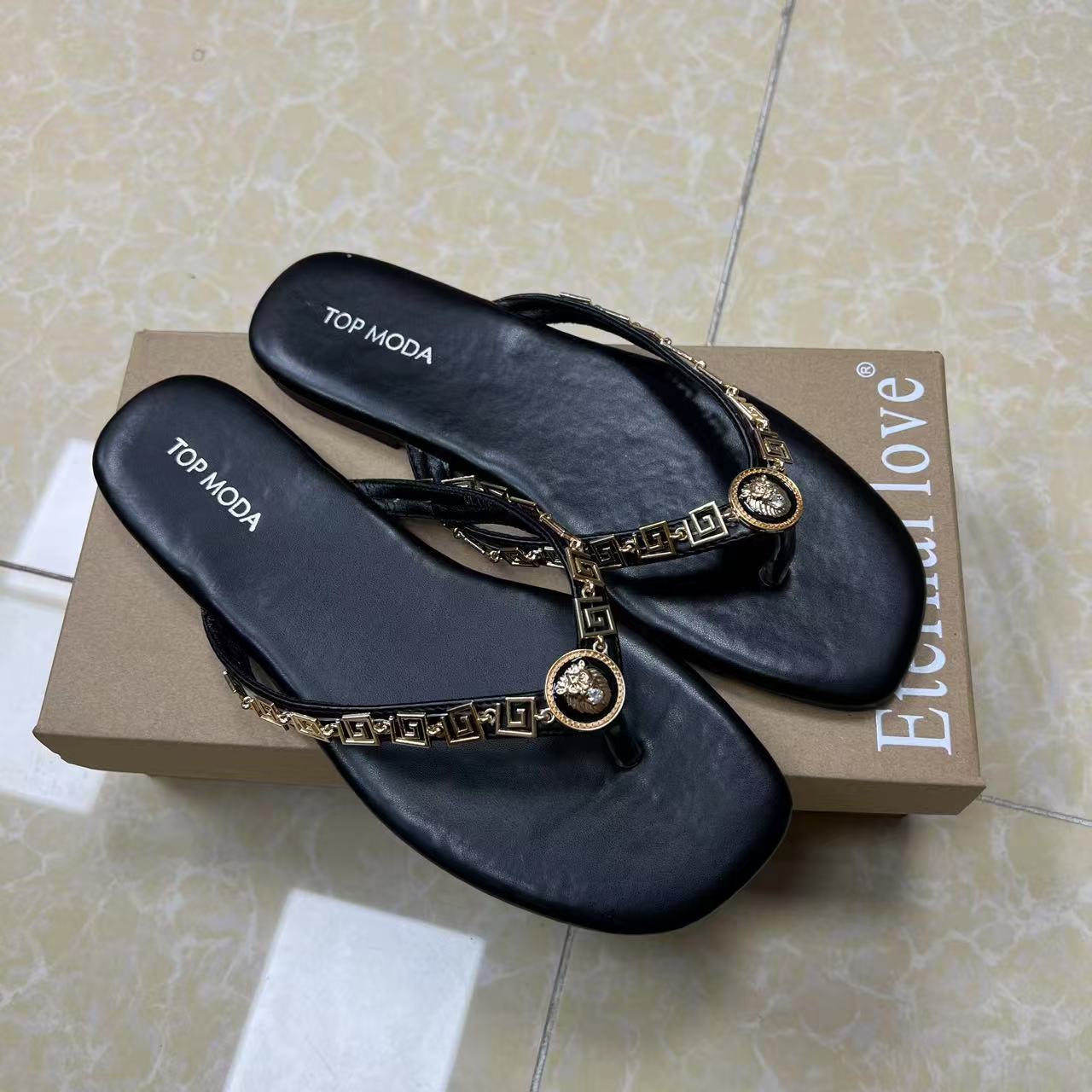 프랑스 스타일 샤넬 스타일 체인 통 플립 플롭 여성 의상 여름 뉴 비치 샌들