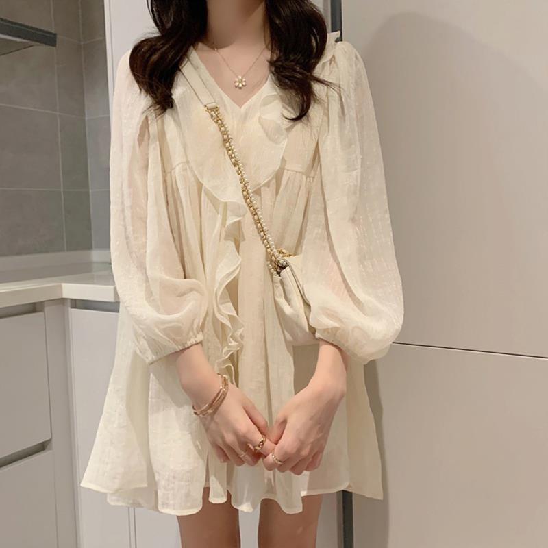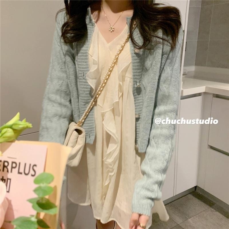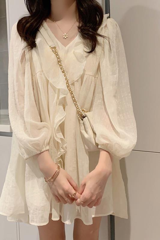 A6C2025 봄과 가을 새로운 순수한 색상 원피스 작은 달콤한 요정 인형 스커트 작은 스트랩 2스토어 가기