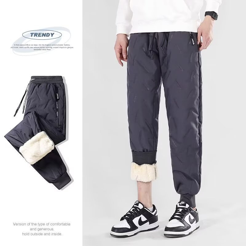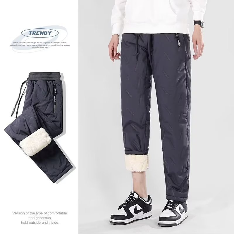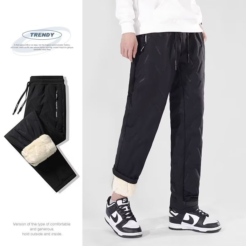 가을 겨울 남성용 램스울 바지 방수 및 방한 루즈 플러스 벨벳 두꺼운 대형 스트레이트 따뜻한 면 바지 스포츠 바지