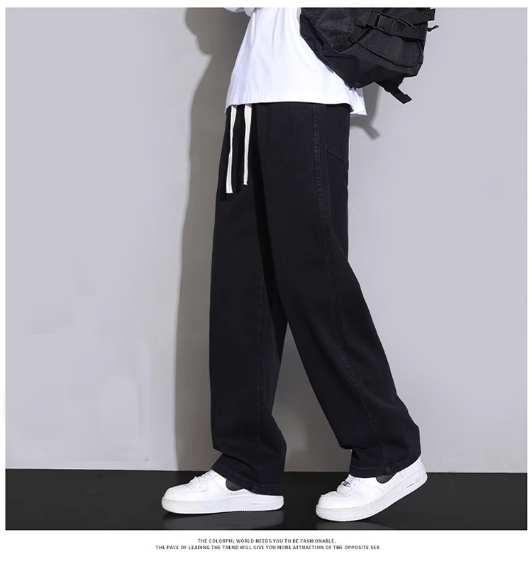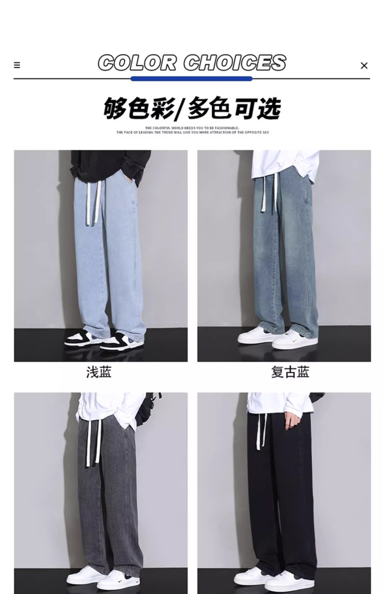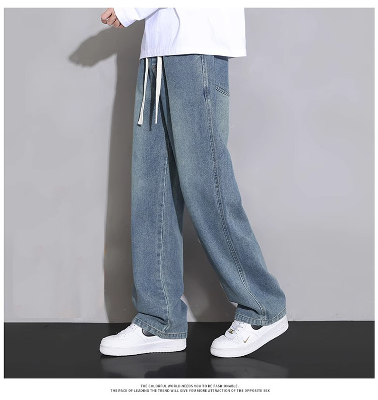 청바지 남성 봄과 가을 유행 브랜드 미국 스타일 하이 스트리트 루즈 스트레이트 캐주얼 바지 학생의 패셔너블 넓은 다리 긴 바지스토어 가기