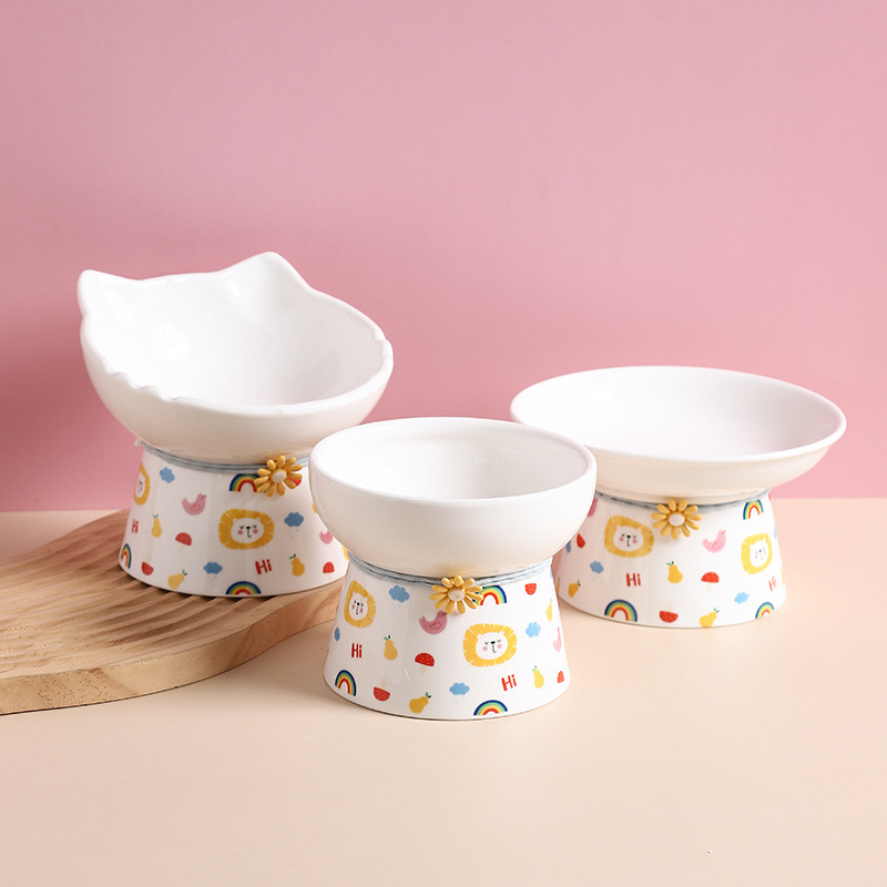 고양이 그릇 세라믹 높은 발 고양이 음식 그릇 물과 음식 그릇 고양이 음식 마시는 그릇 목 보호 애완 동물 개 먹이 그릇