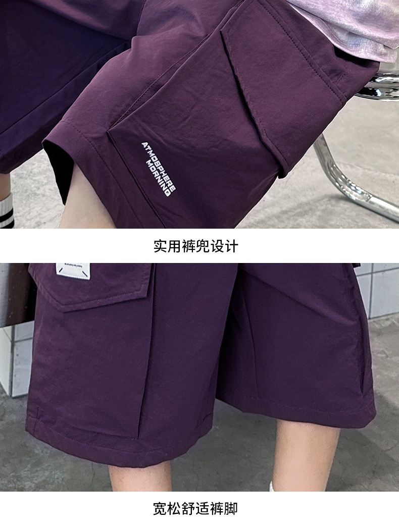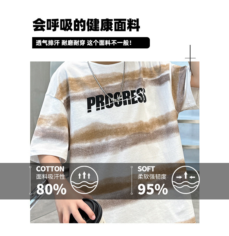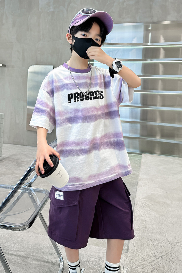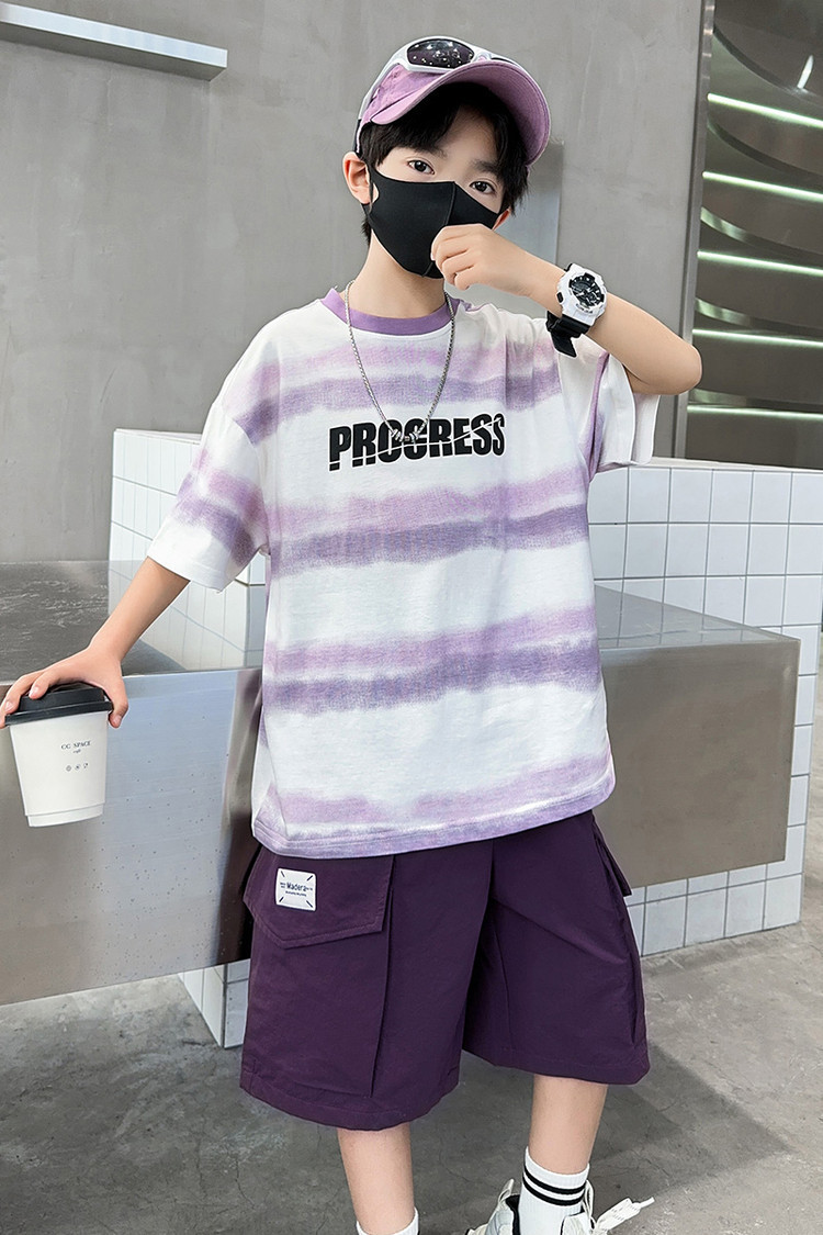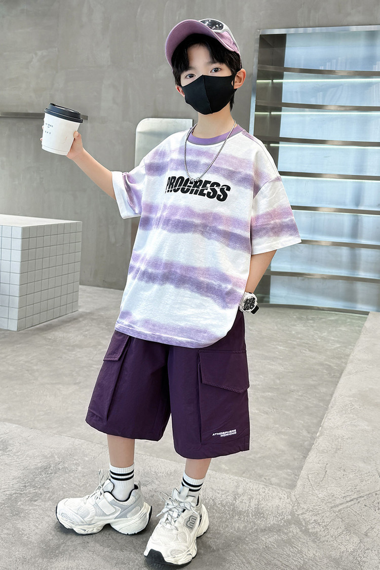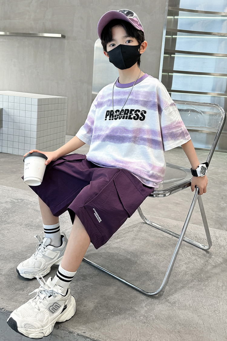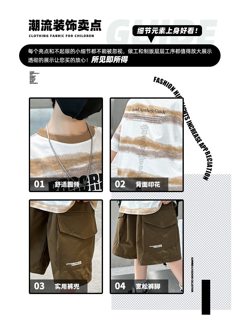 남학생 여름복 줄무늬 편지 반팔 티셔츠 세트 2025 새로운 중대형 어린이 여름 바지 투피스 세트