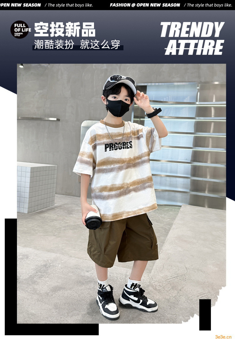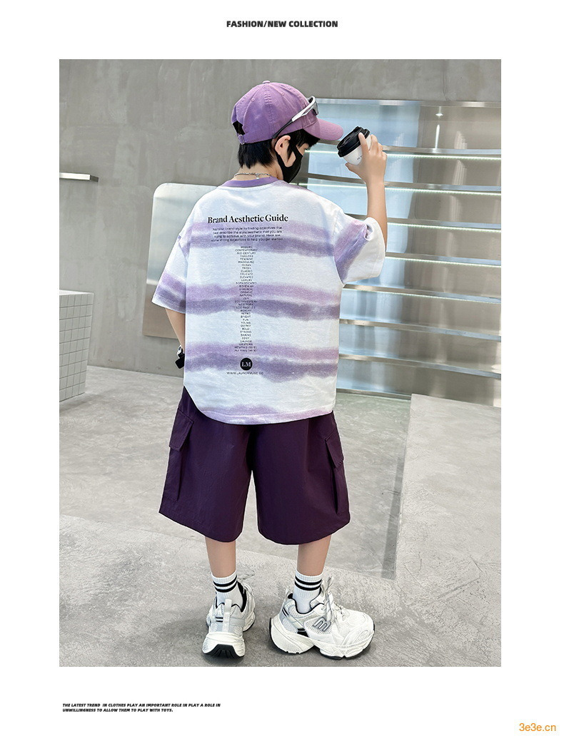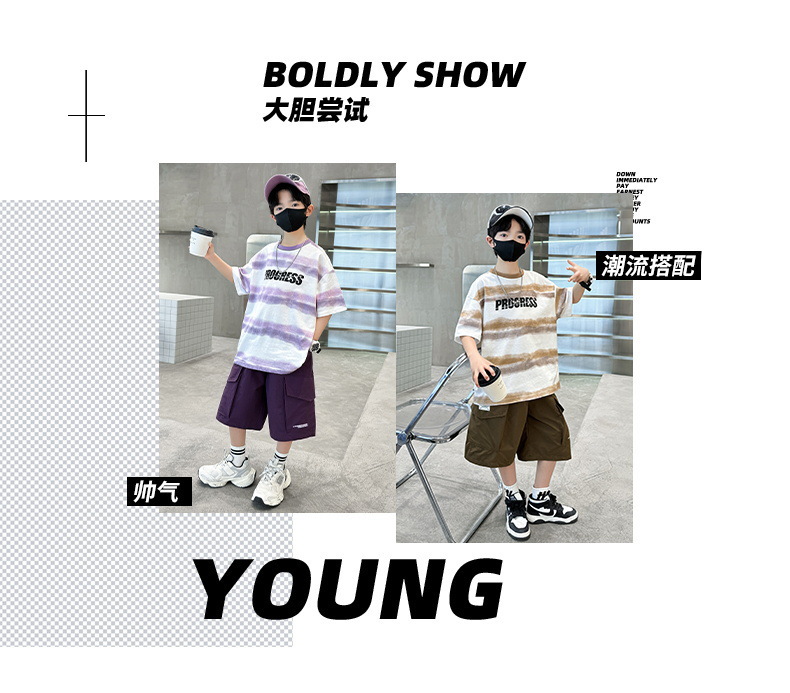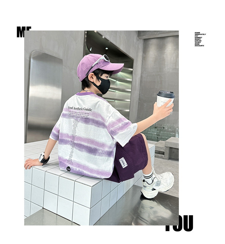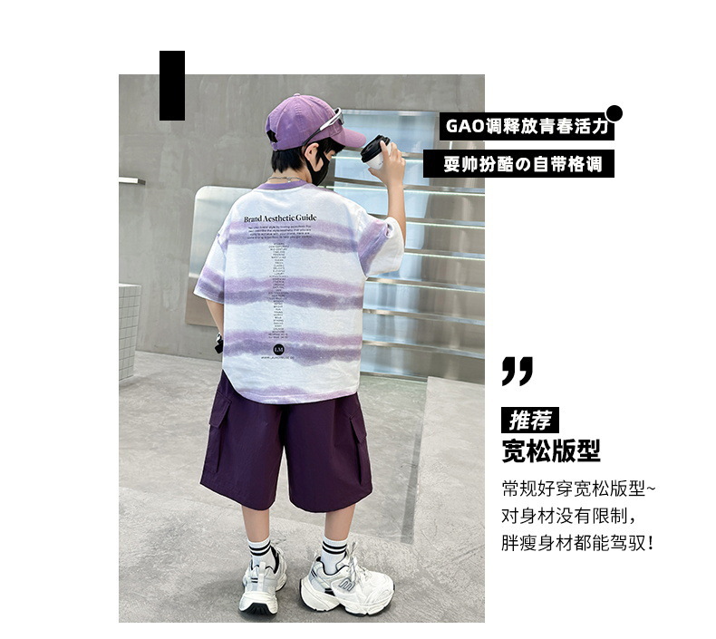 남학생 여름복 줄무늬 편지 반팔 티셔츠 세트 2025 새로운 중대형 어린이 여름 바지 투피스 세트스토어 가기