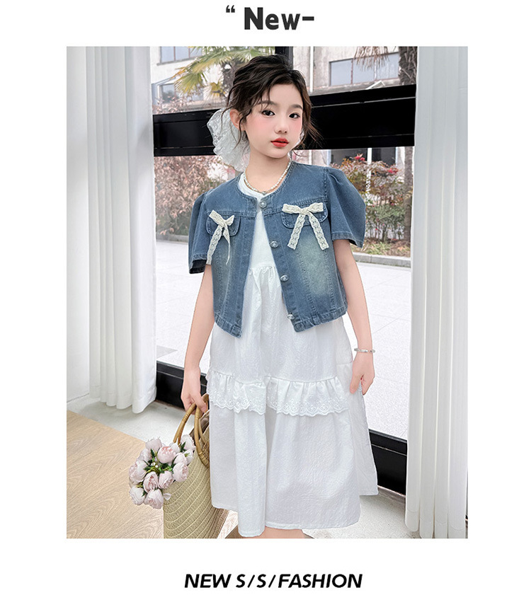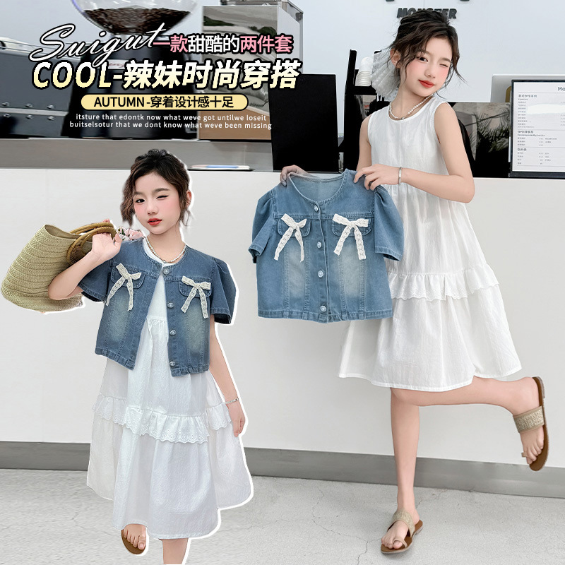 여자 서스펜더 스커트 여름 정장 2025 새로운 여자 어린이 드레스 여름 드레스 유행 큰 어린이 데님 스커트스토어 가기
