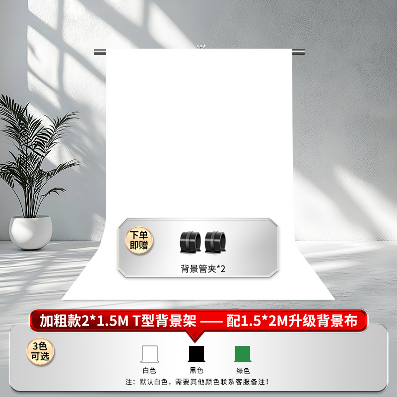 • 굵은 버전 2* 1.5m T자형 배경 스탠드 + 1.5*2M 업그레이드된 배경 천 [기본 흰색] + 무료 클립-1x1m