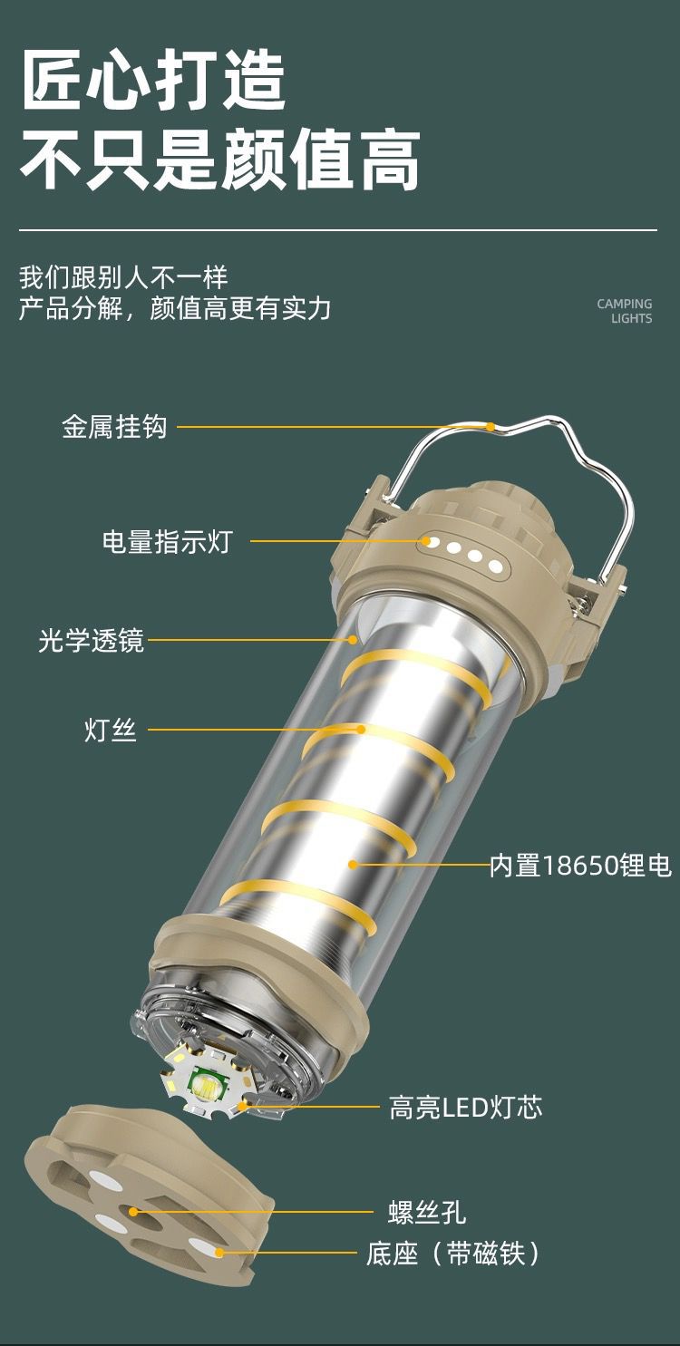 전술 캠핑 초장거리 야외 배터리 수명 조명 분위기 충전 캠프 캠핑 휴대용 텐트 새로운 충전식