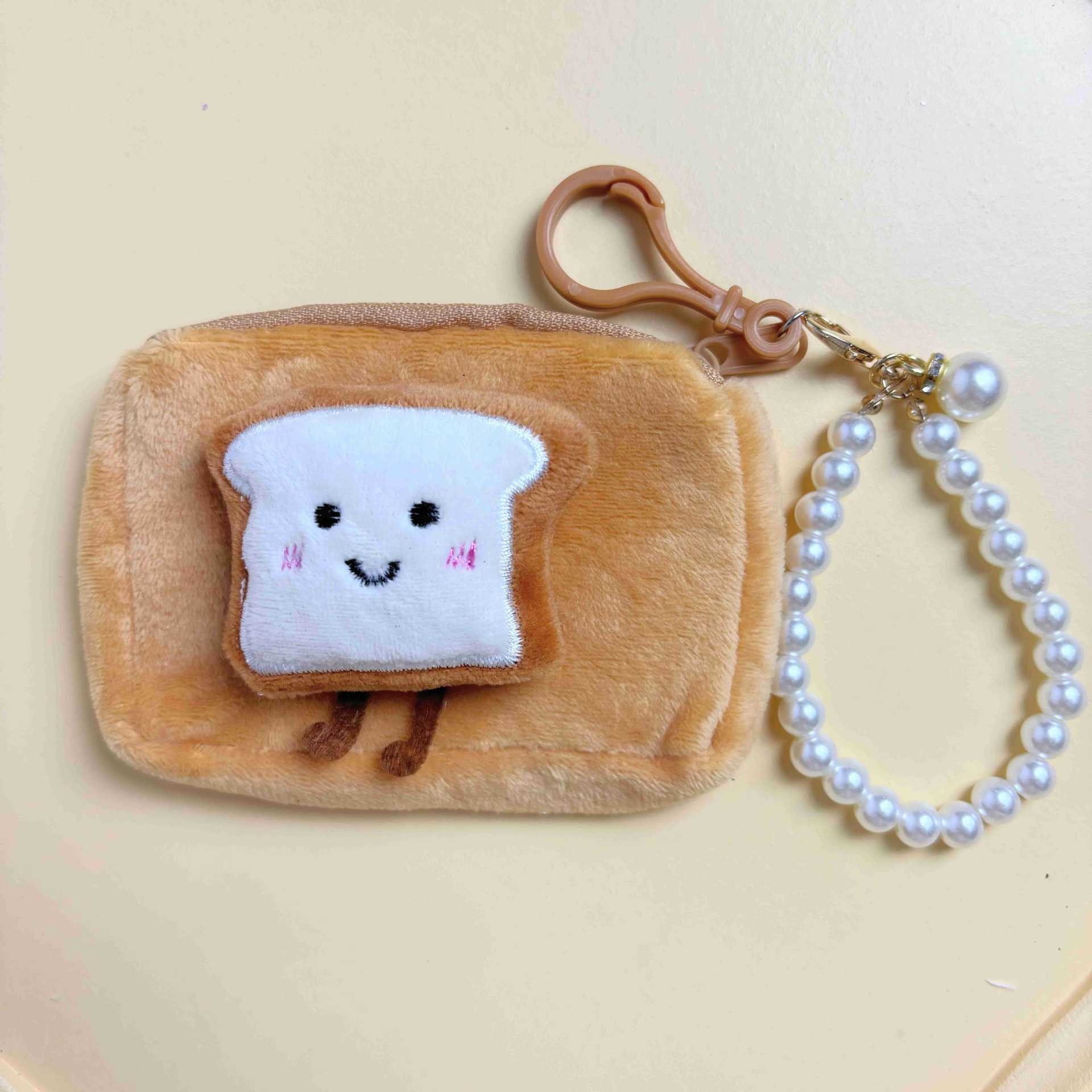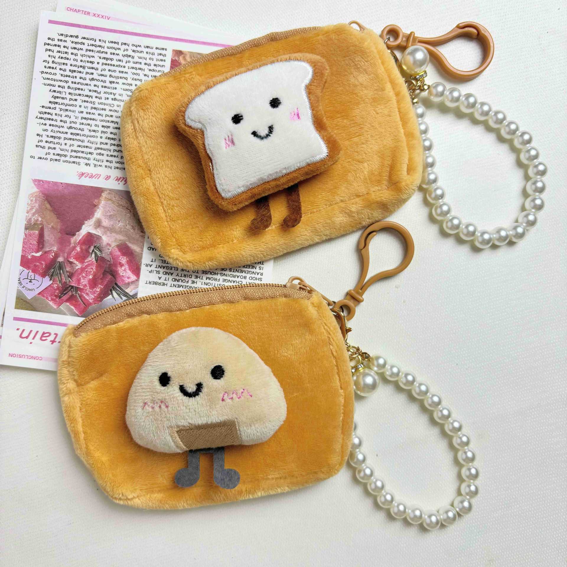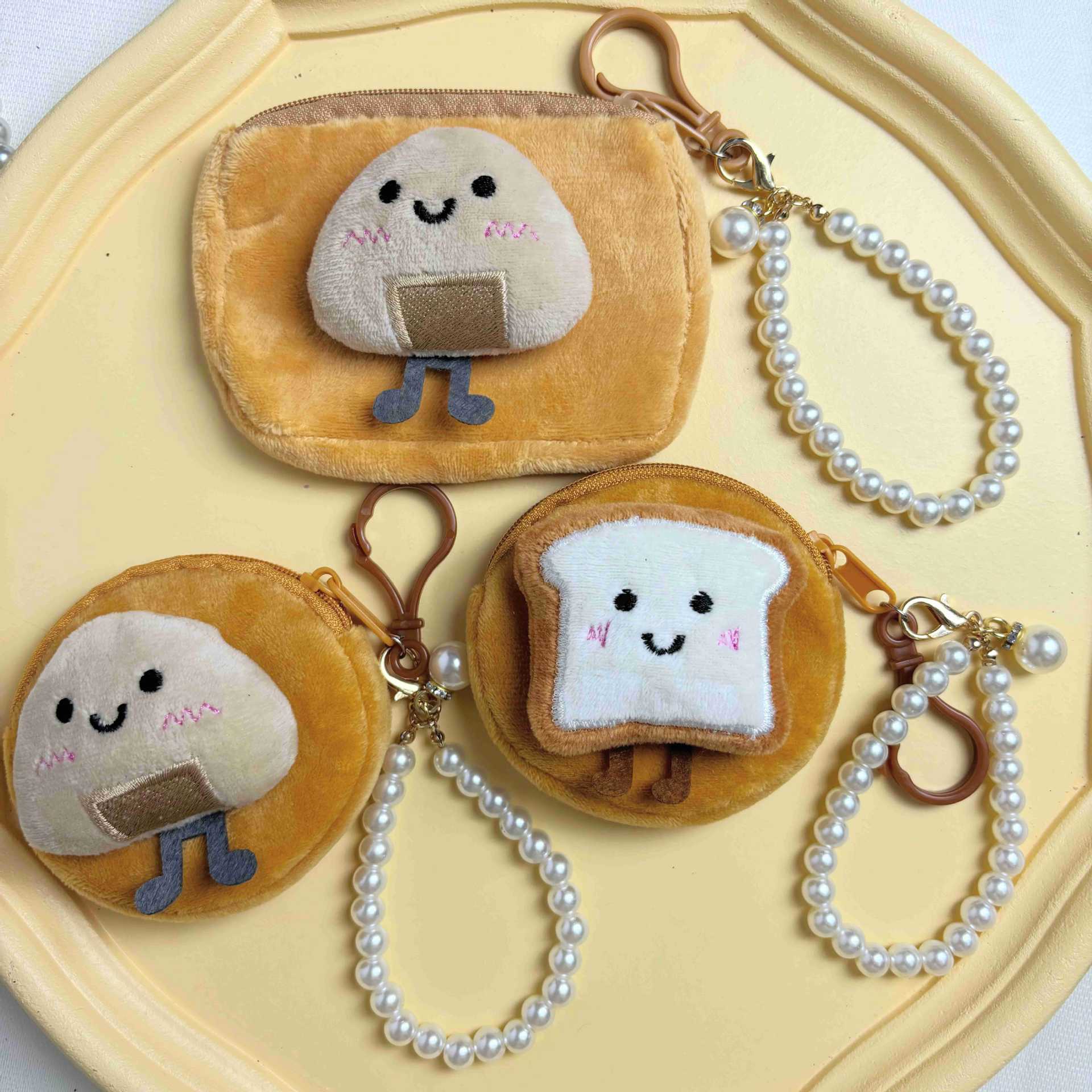 봉제 만화 인형 동전 지갑 귀여운 주먹밥 토스트 음식 놀이 키 체인 헤드셋 보관 가방을 가방에 걸 수 있습니다.스토어 가기