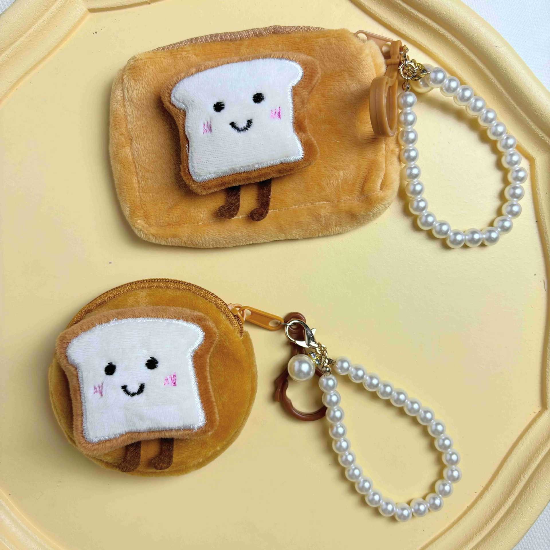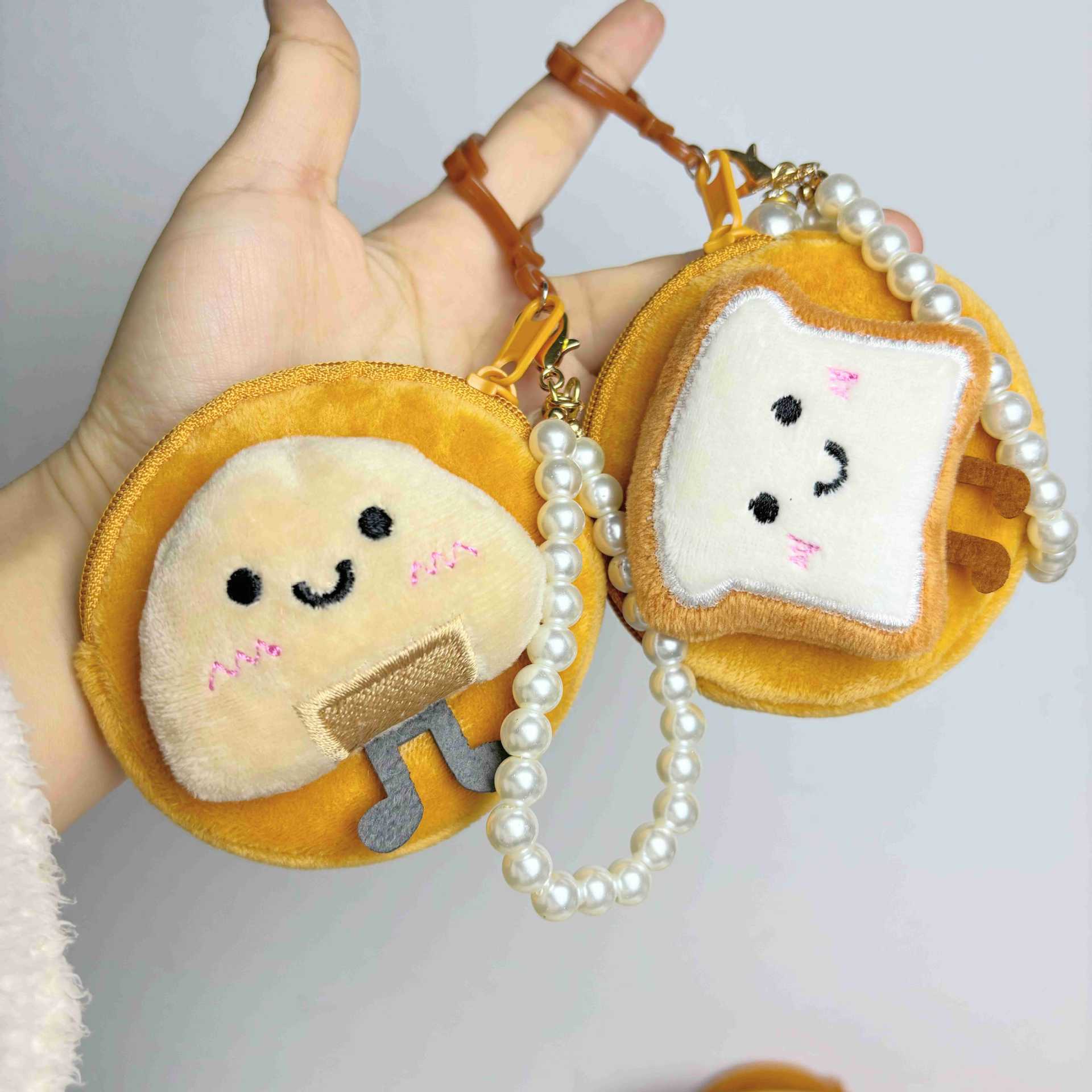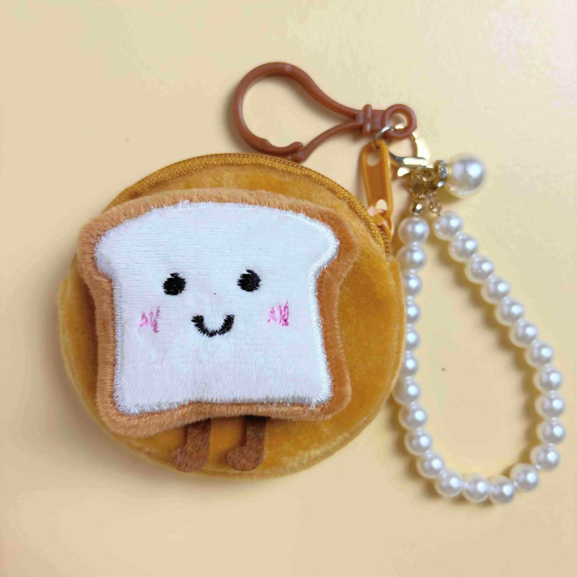 봉제 만화 인형 동전 지갑 귀여운 주먹밥 토스트 음식 놀이 키 체인 헤드셋 보관 가방을 가방에 걸 수 있습니다.스토어 가기