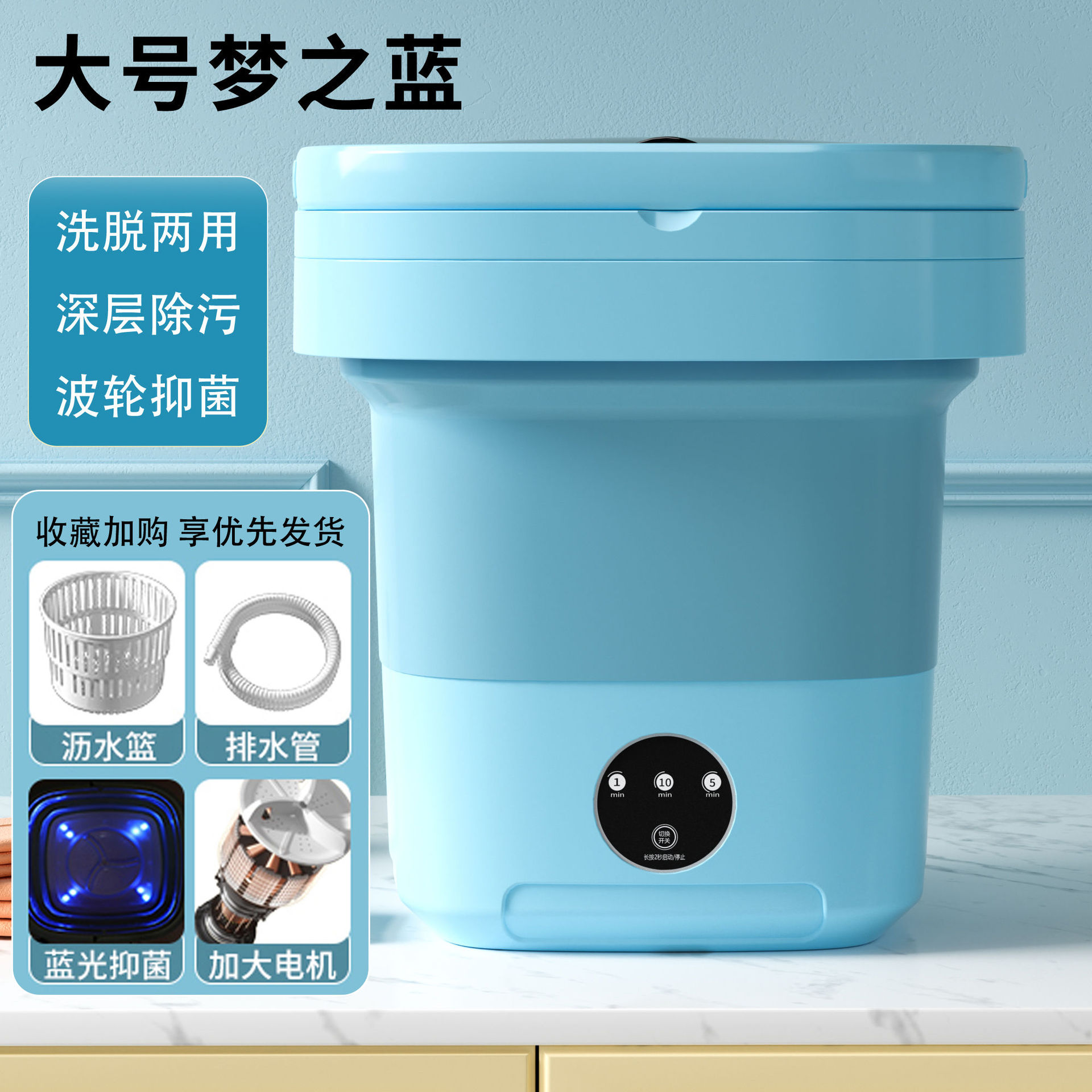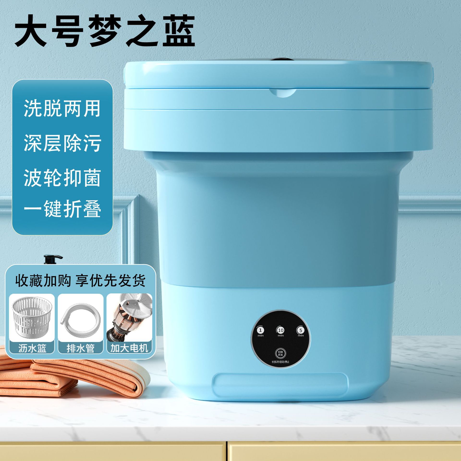 속옷용 접이식 세탁기, 미니 세탁 및 탈착 일체형, 휴대용 자동 기숙사 소형 양말 세탁기스토어 가기