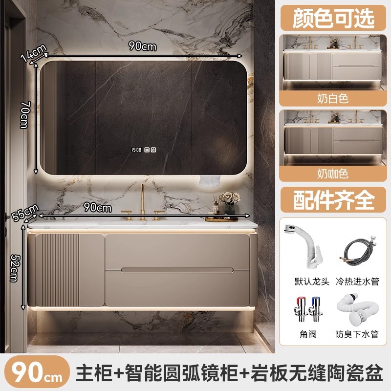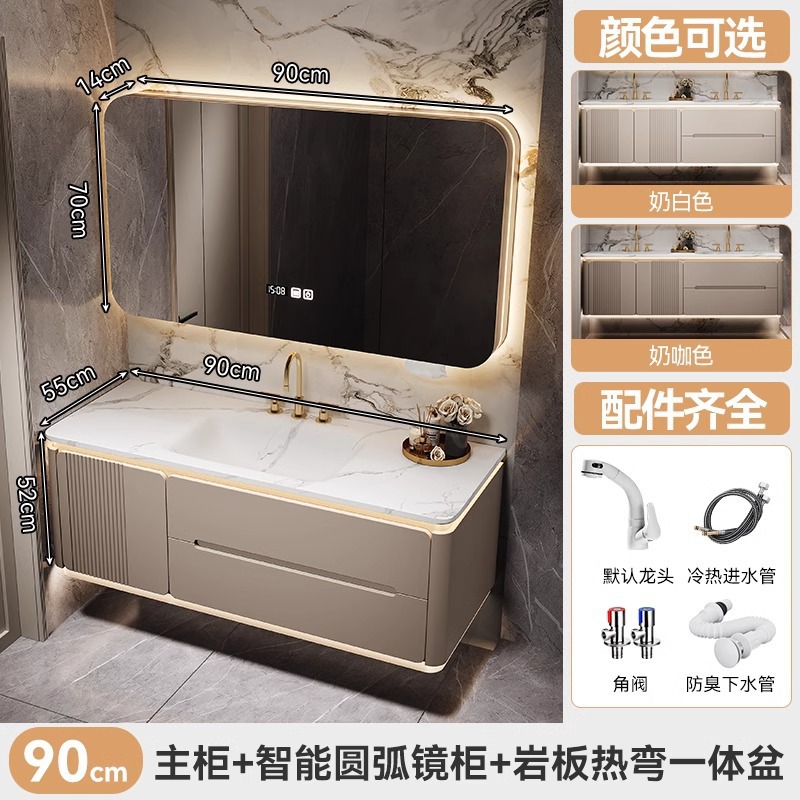 • 90 슬레이트 핫 벤드 세면대 + 원형 스마트 거울 캐비닛 + 오크 캐비닛