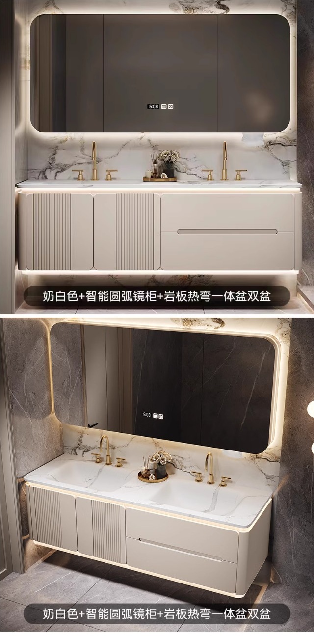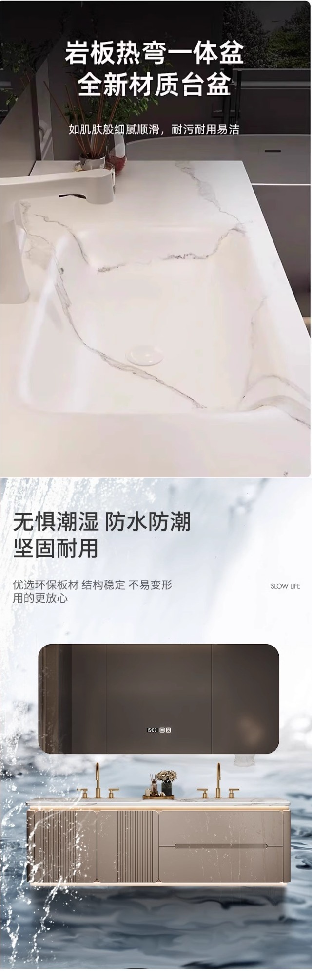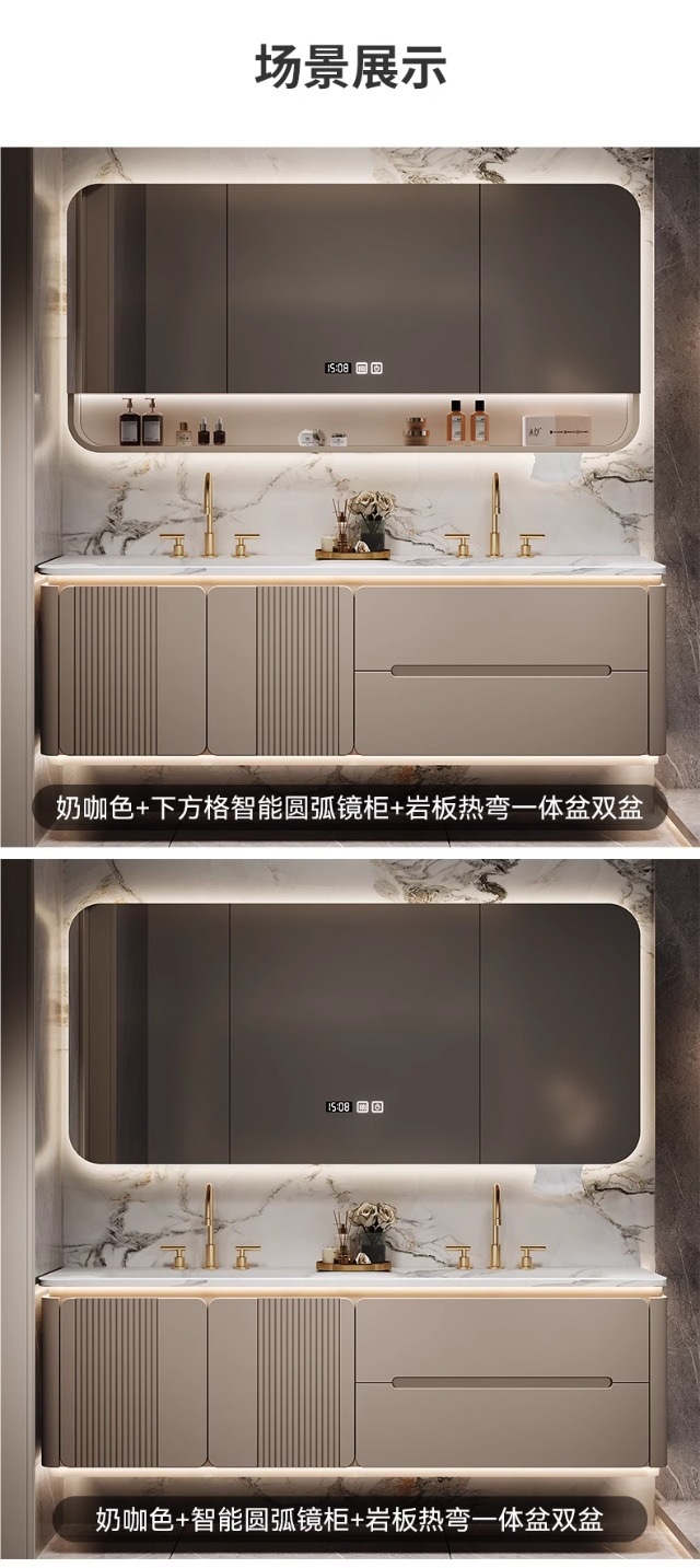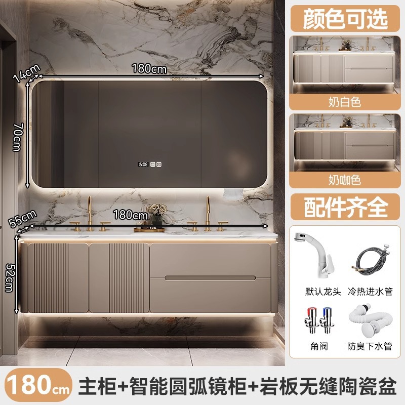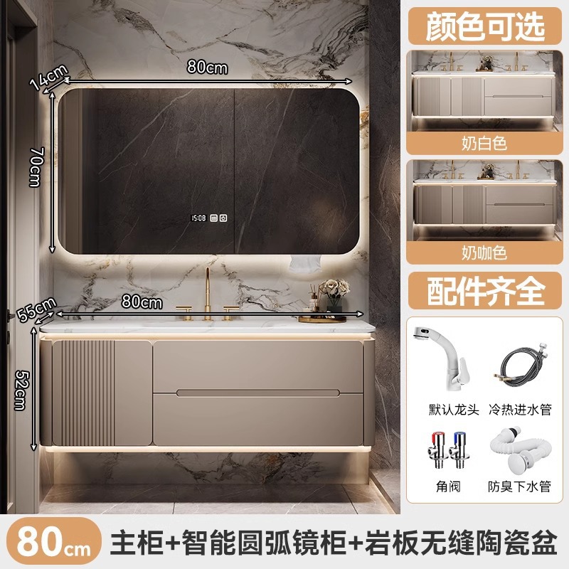 • 80 슬레이트 핫 벤드 세면대 + 원형 스마트 거울 캐비닛 + 오크 캐비닛