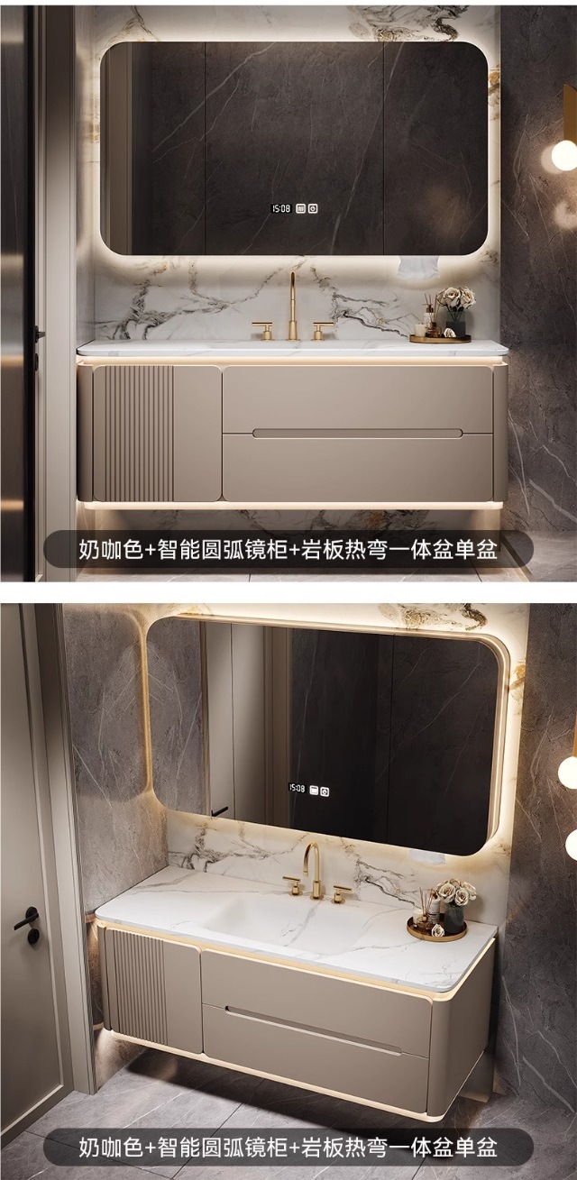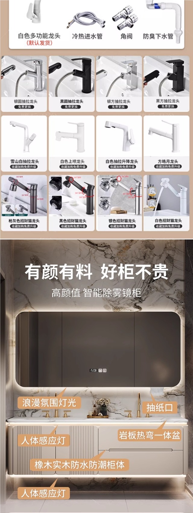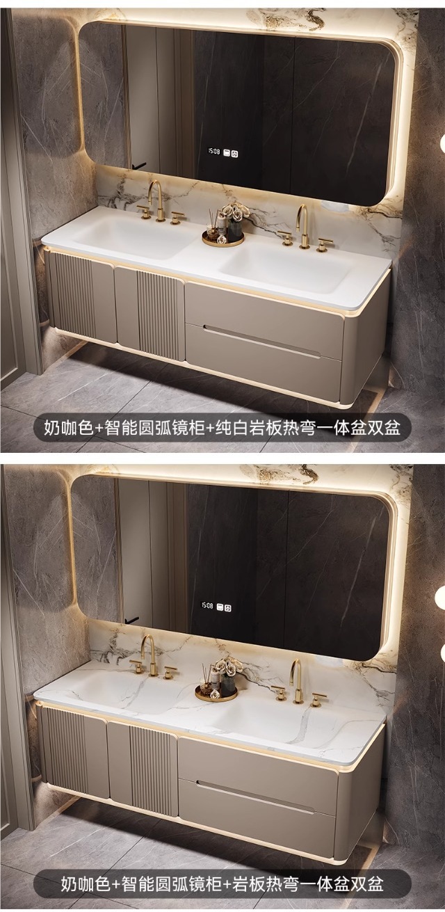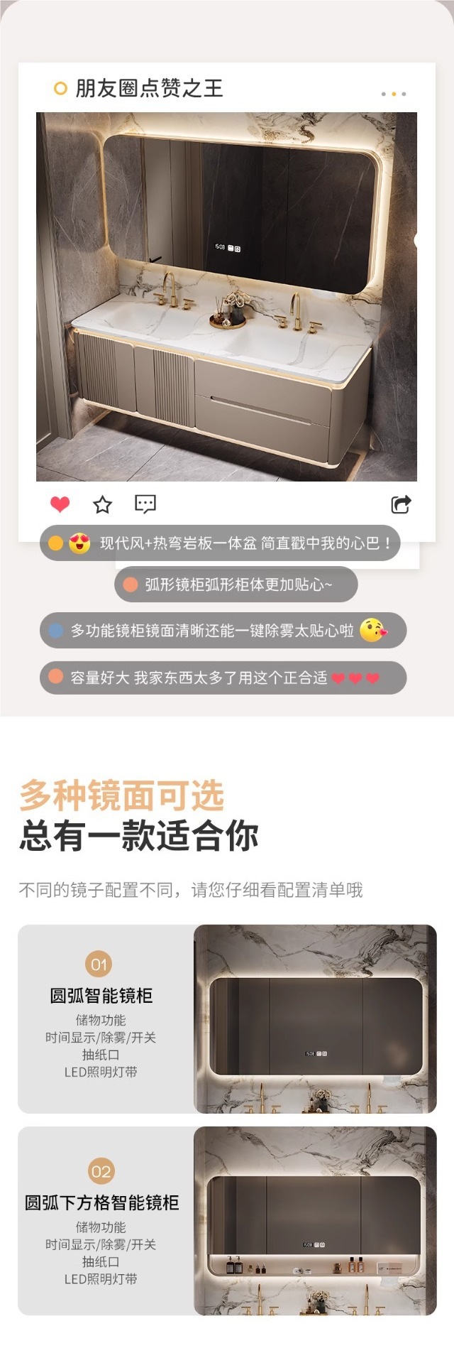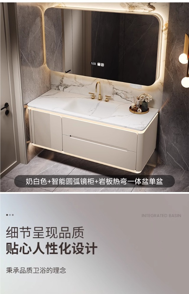 • 80 슬레이트 핫 벤드 세면대 + 원형 스마트 거울 캐비닛 + 오크 캐비닛