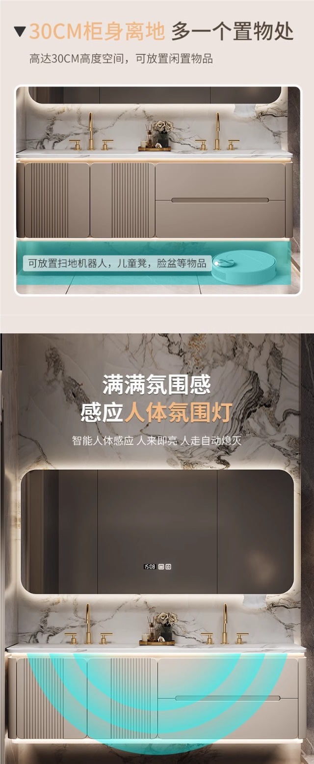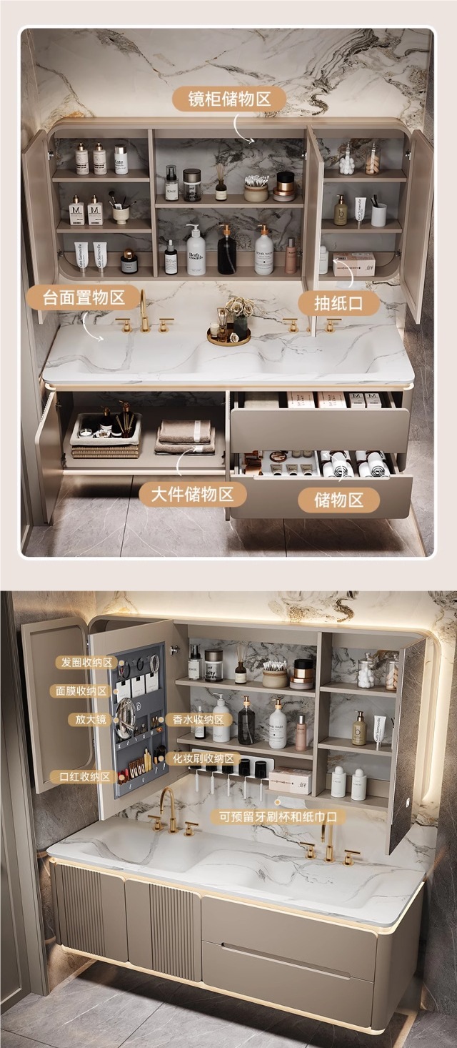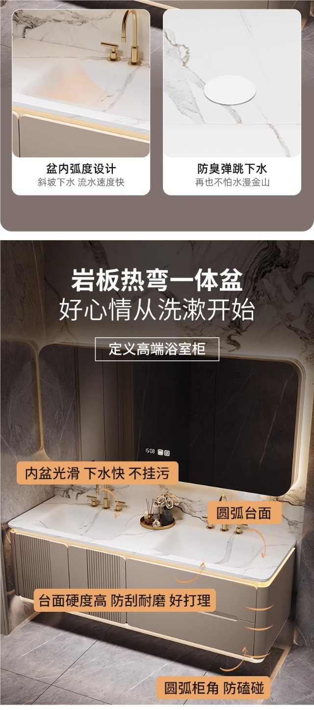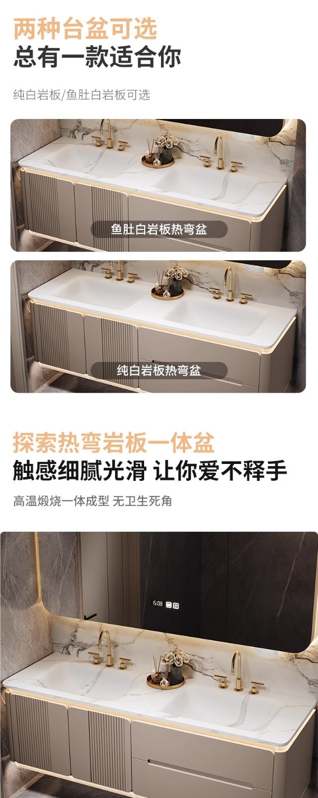 • 80 슬레이트 핫 벤드 세면대 + 원형 스마트 거울 캐비닛 + 오크 캐비닛