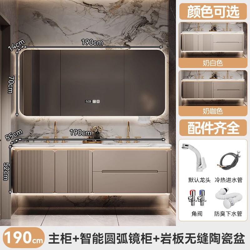 • 190 슬레이트 핫 벤트 이중 세면대 + 원형 스마트 거울 캐비닛 + 오크 캐비닛