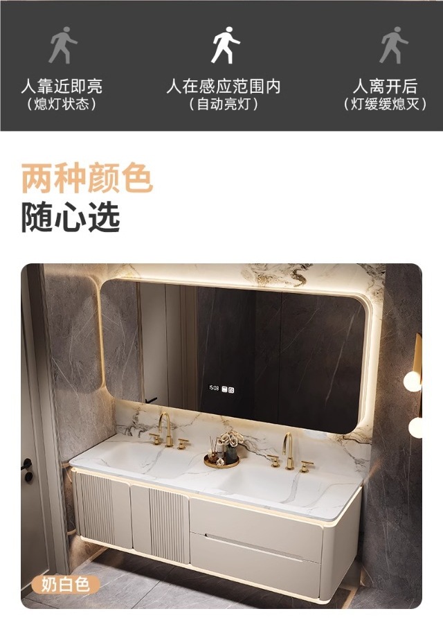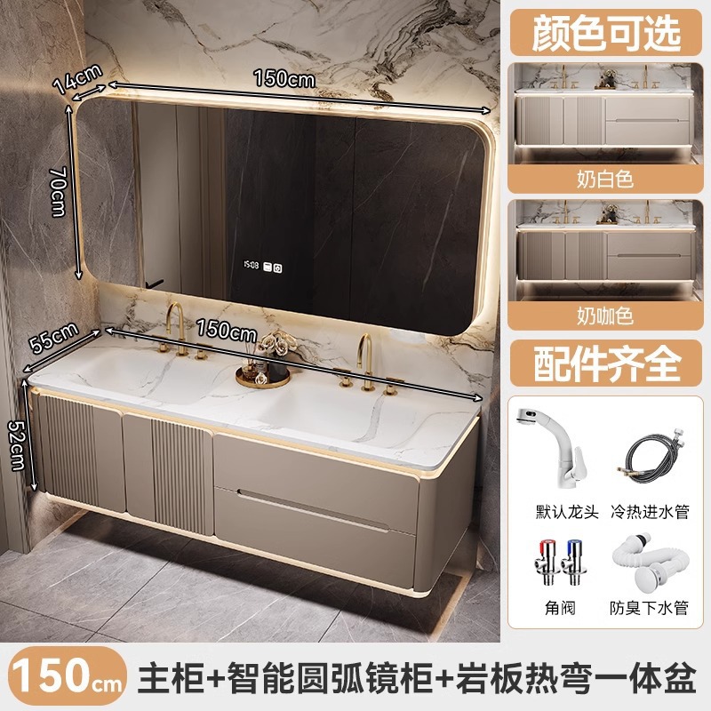 • 120 슬레이트 핫 벤드 세면대 + 원형 스마트 거울 캐비닛 + 오크 캐비닛