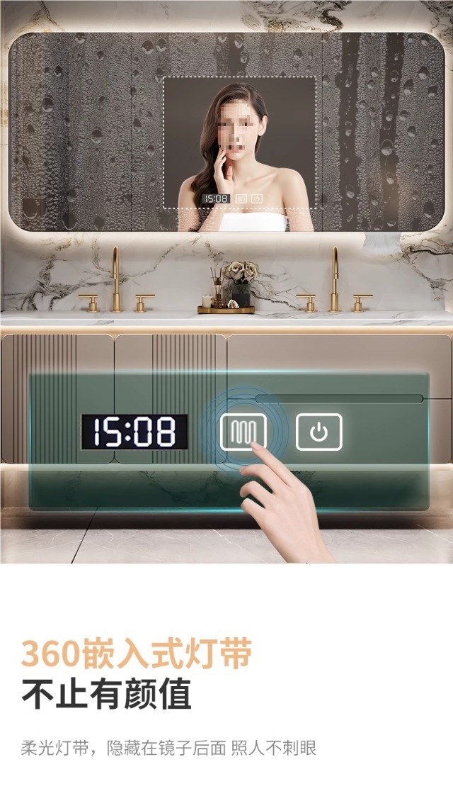 • 70 슬레이트 이음매없는 세라믹 세면대 + 원형 스마트 거울 캐비닛 + 오크 메인 캐비닛