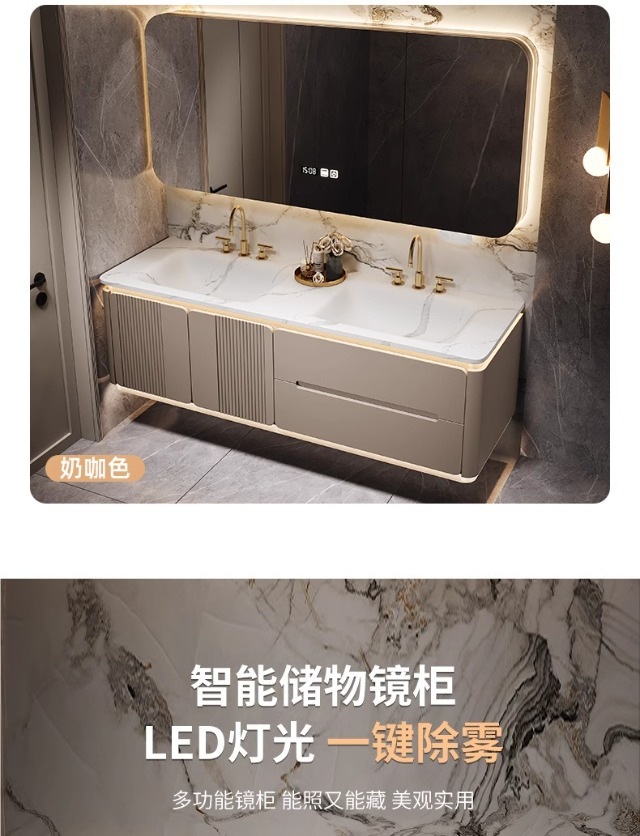 새로운 욕실 캐비닛 조합 오크 라이트 럭셔리 세척 세라믹 분지 간단한 현대 크림 스타일 더블 세면대