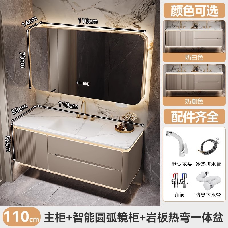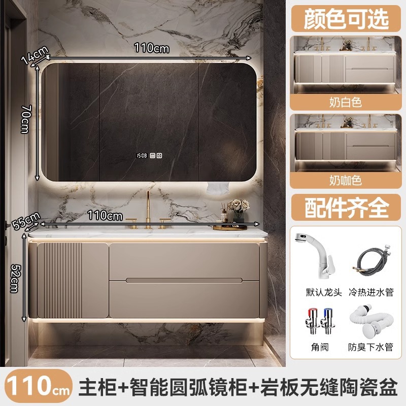 • 110 슬레이트 핫 벤드 세면대 + 원형 스마트 거울 캐비닛 + 오크 캐비닛