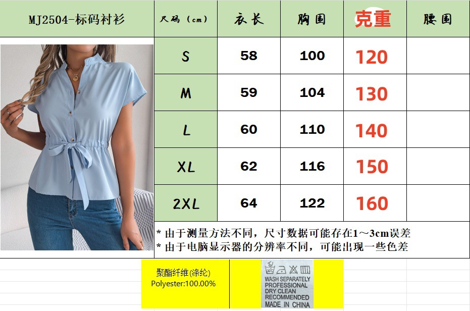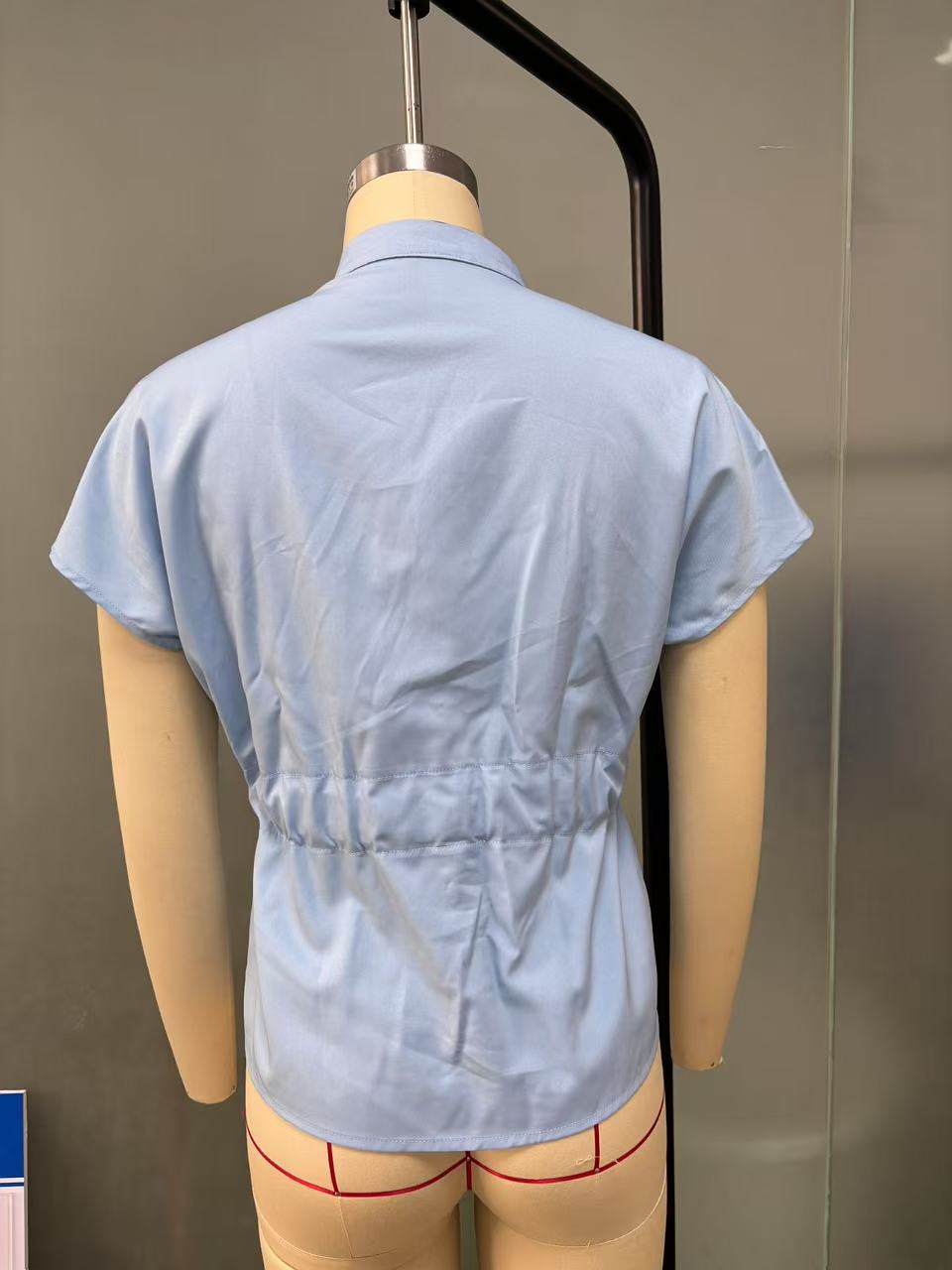 2025 여름 아마존 국경 셔츠 반팔 쉬폰 v 넥 버튼 셔츠 기질 우아한 벨트 스타일 여성 의류스토어 가기