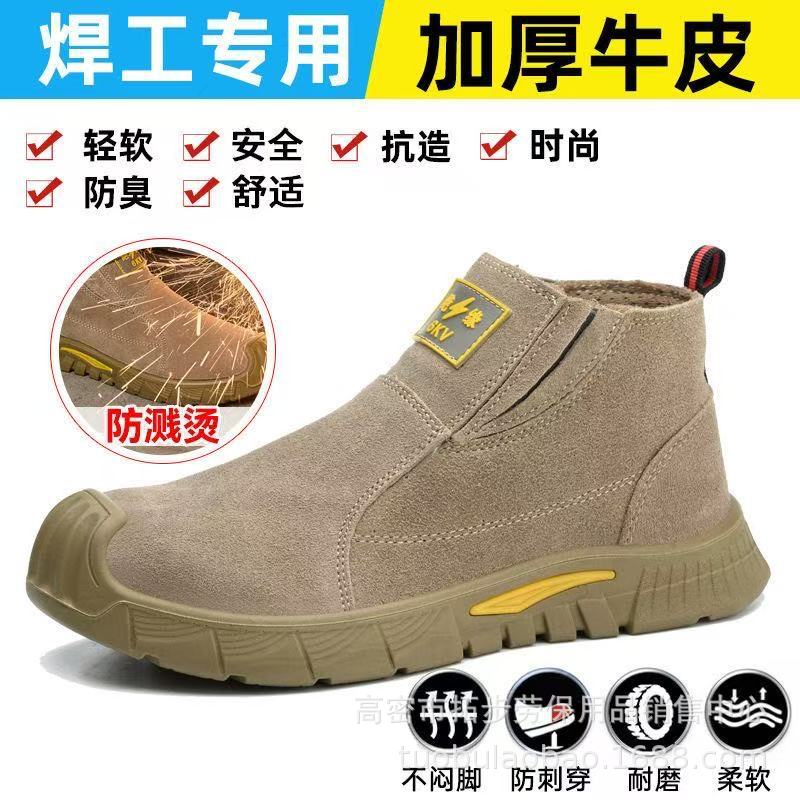 공장 직접 판매 노동 보호 신발, 충격 방지 및 찌르기 방지 강철 발가락, 단단한 바닥, 슬립온 소가죽, 화상 방지 및 내마모성 용접공 신발스토어 가기