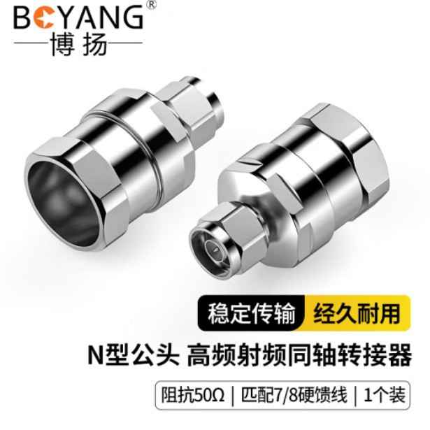 博扬 高频射频同轴转接器50欧 N型公头 L16连接器 NM-J7/8 匹配7/8(50-22)硬馈线 1个装 BY-N-J-7/8*1 合格证*1