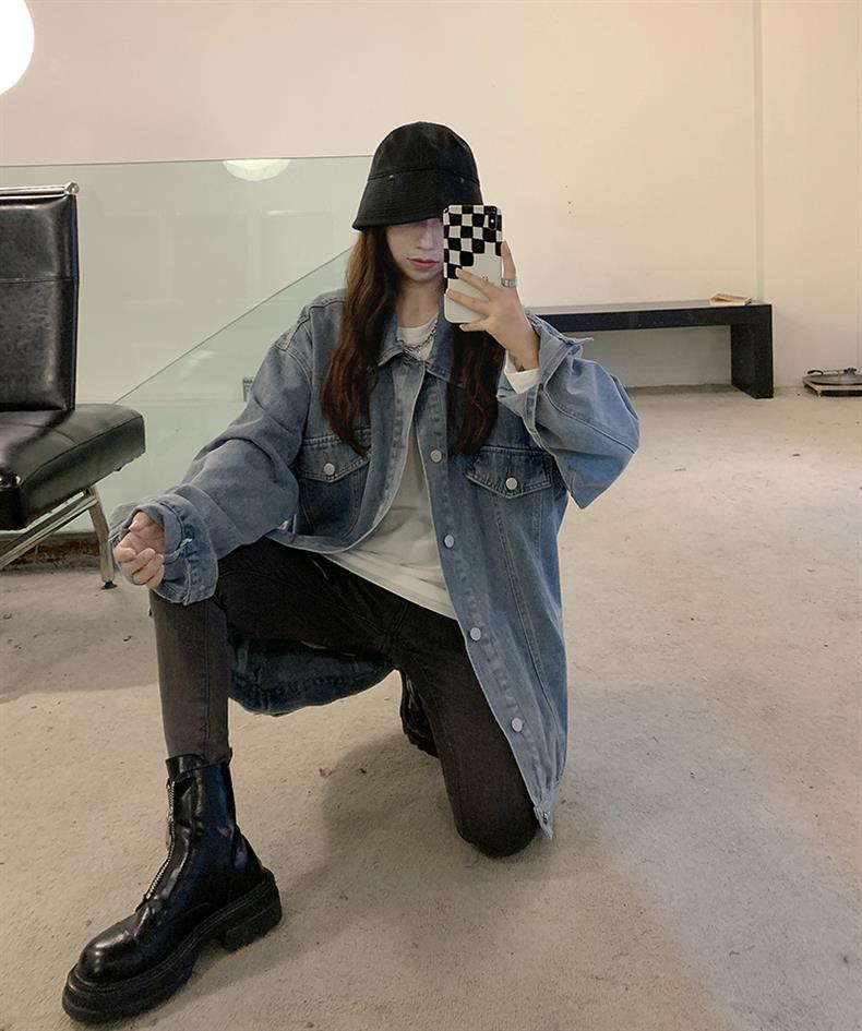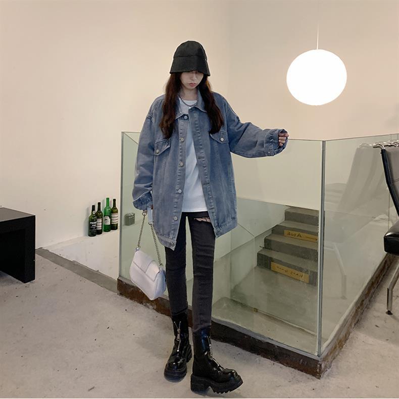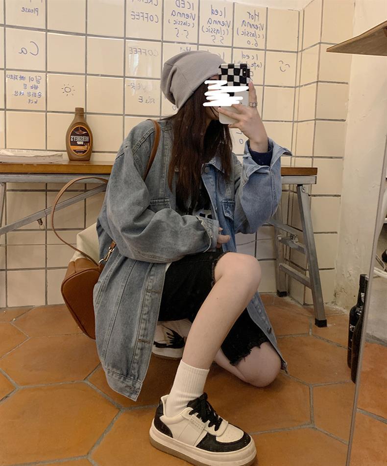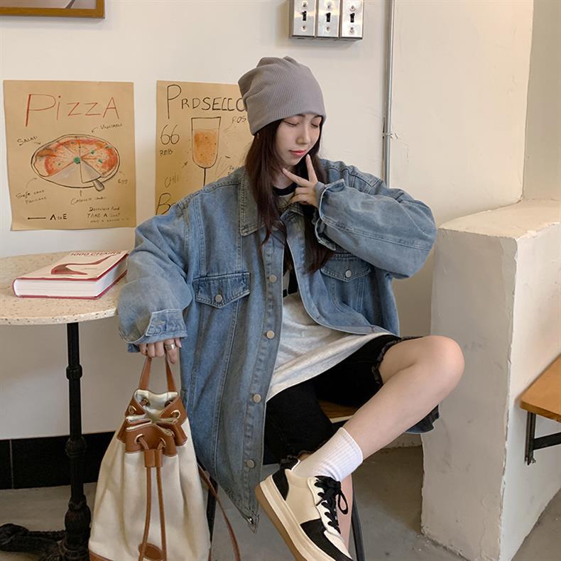 여성용 하이 엔드 레트로 데님 재킷, 루즈하고 슬림한 한국식 봄, 가을 다용도 학생 BF 스타일 홍콩 스타일 재킷 탑스토어 가기