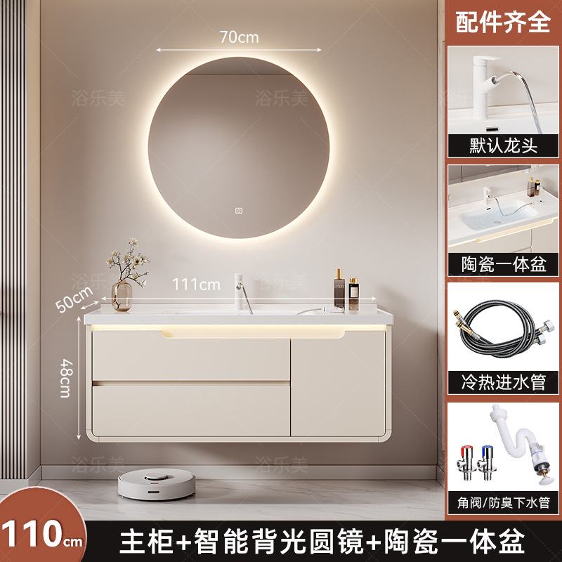 • 110CM 세라믹 일체형 세면대 + 스마트 백라이트 원형 거울