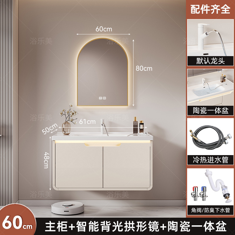 • 60CM 세라믹 일체형 세면대 + 스마트 백라이트 아치 거울