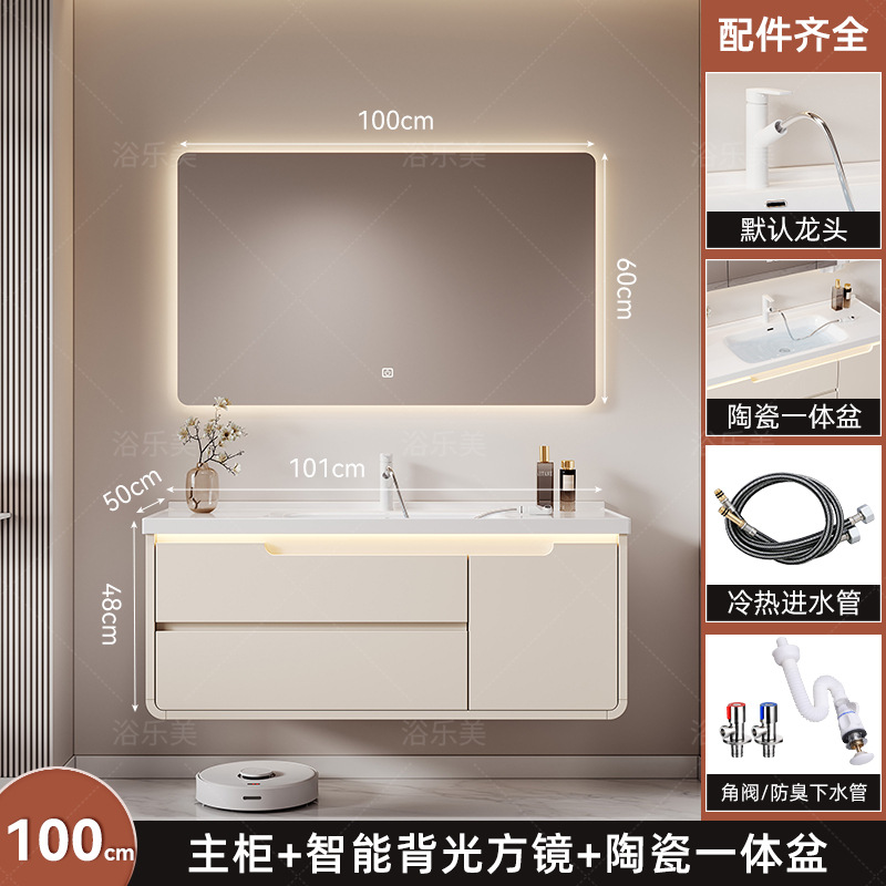 • 100CM 세라믹 일체형 세면대 + 스마트 백라이트 사각 거울