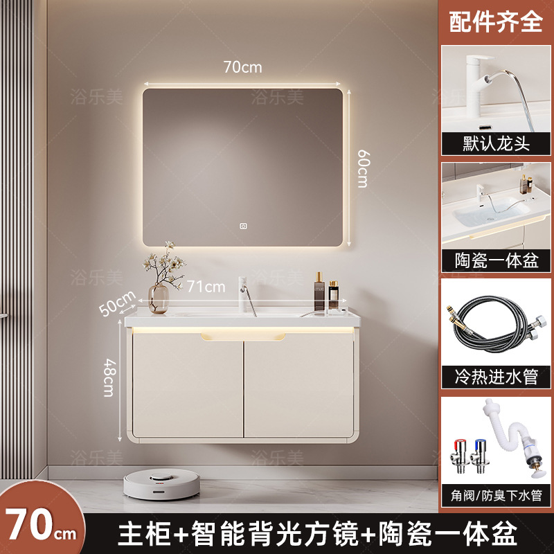 • 70CM 세라믹 일체형 세면대 + 스마트 백라이트 원형 거울