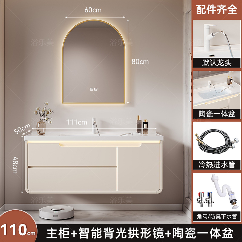 • 110CM 세라믹 일체형 세면대 + 스마트 백라이트 아치 거울