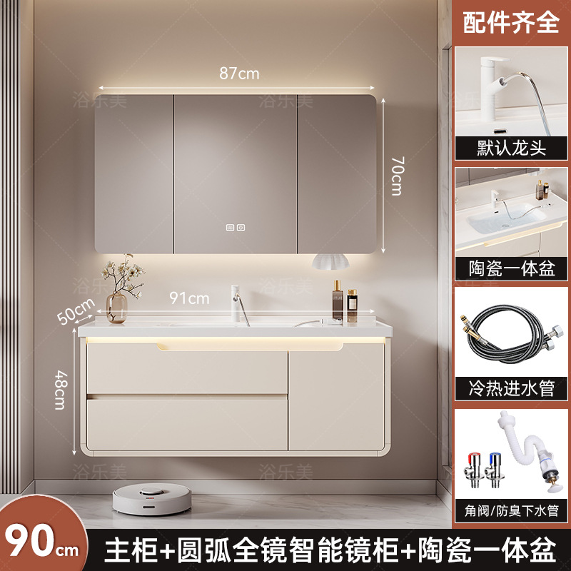 • 90CM 세라믹 일체형 세면대 + 스마트 아크 풀 미러