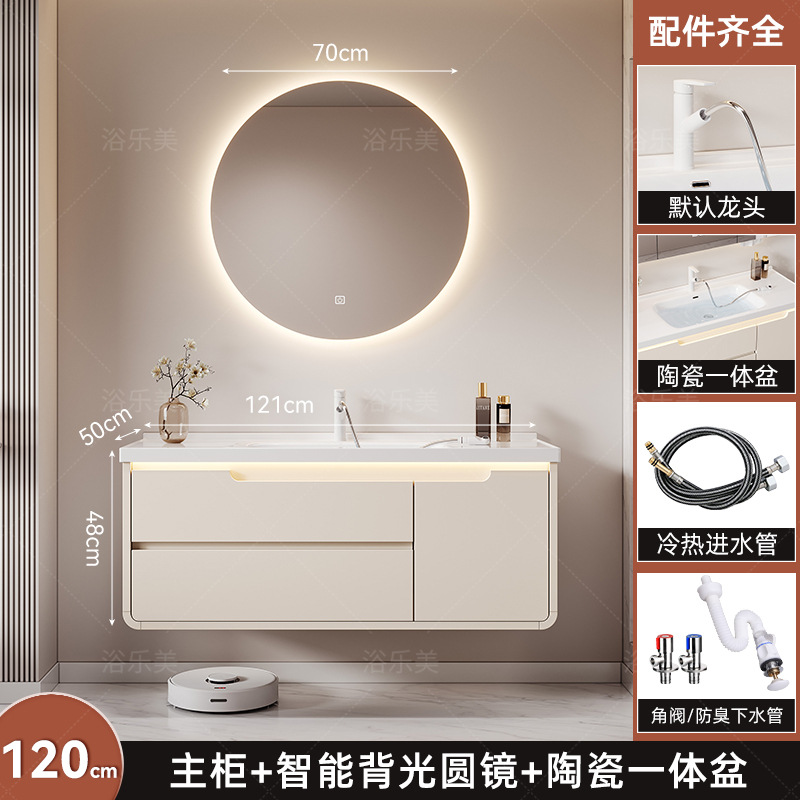 • 120CM 세라믹 일체형 세면대 + 스마트 백라이트 원형 거울