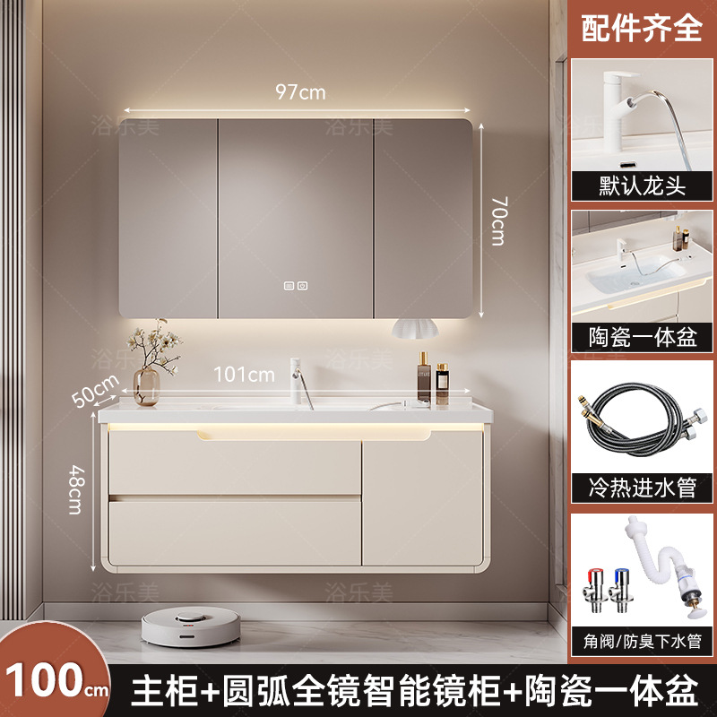 • 100CM 세라믹 일체형 세면대 + 스마트 백라이트 아치 거울