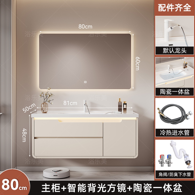• 80CM 세라믹 일체형 세면대 + 스마트 백라이트 원형 거울