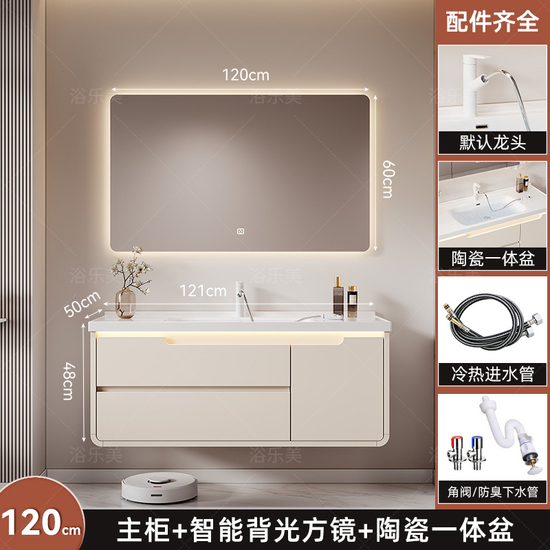 • 120CM 세라믹 일체형 세면대 + 스마트 백라이트 사각 거울