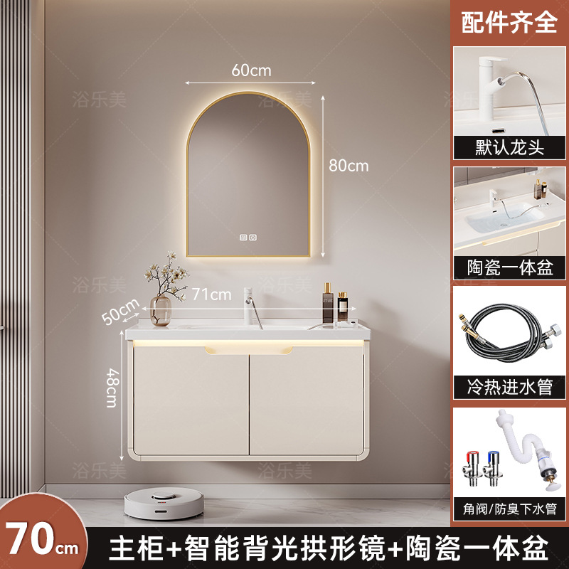 • 70CM 세라믹 일체형 세면대 + 스마트 백라이트 아치 거울