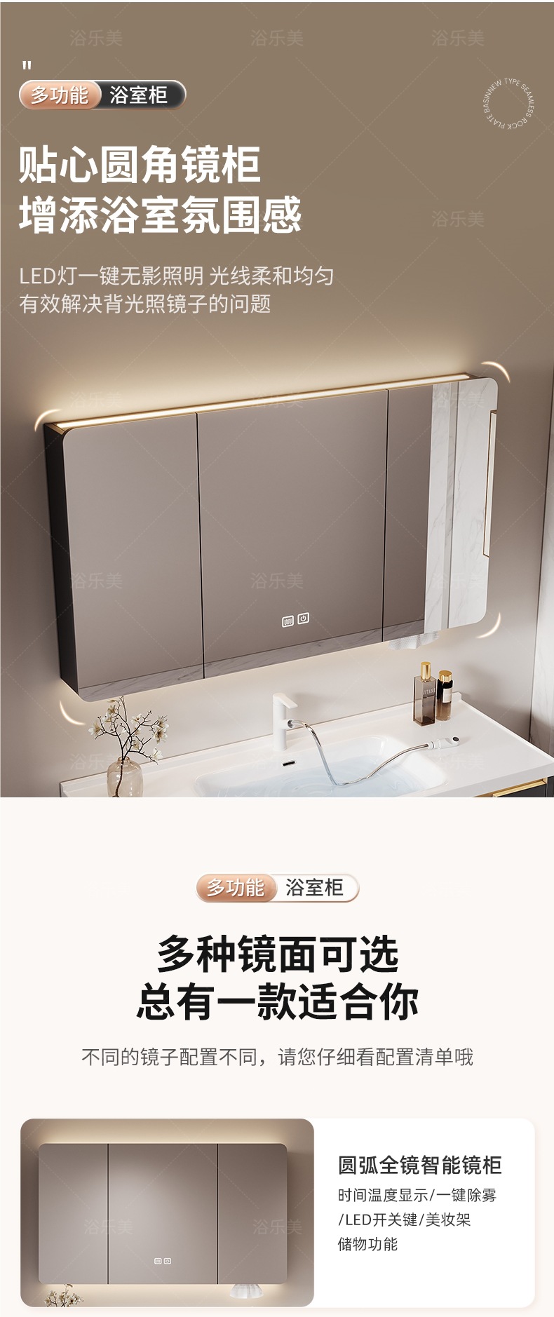 • 80CM 세라믹 일체형 세면대 + 스마트 백라이트 아치 거울