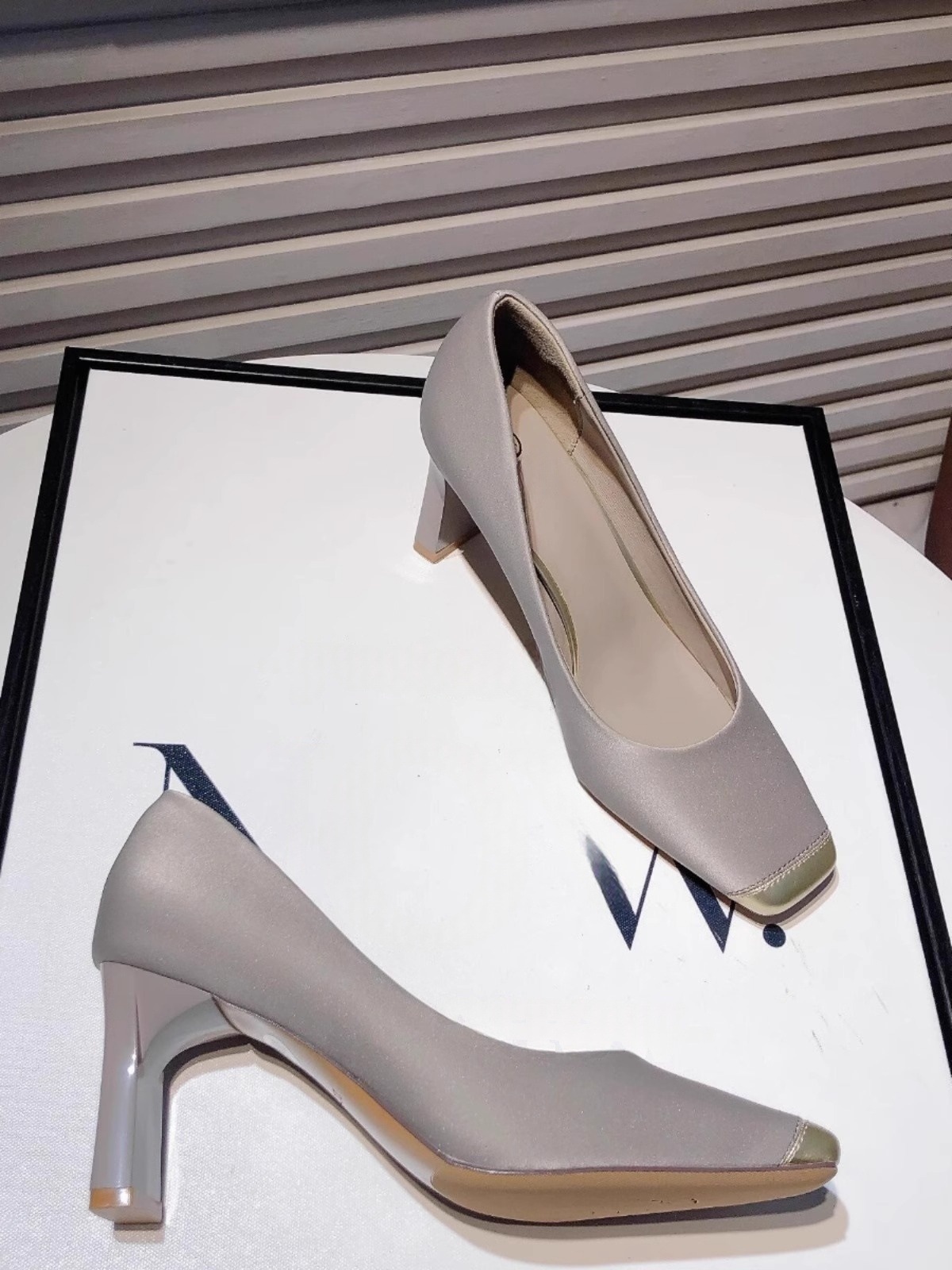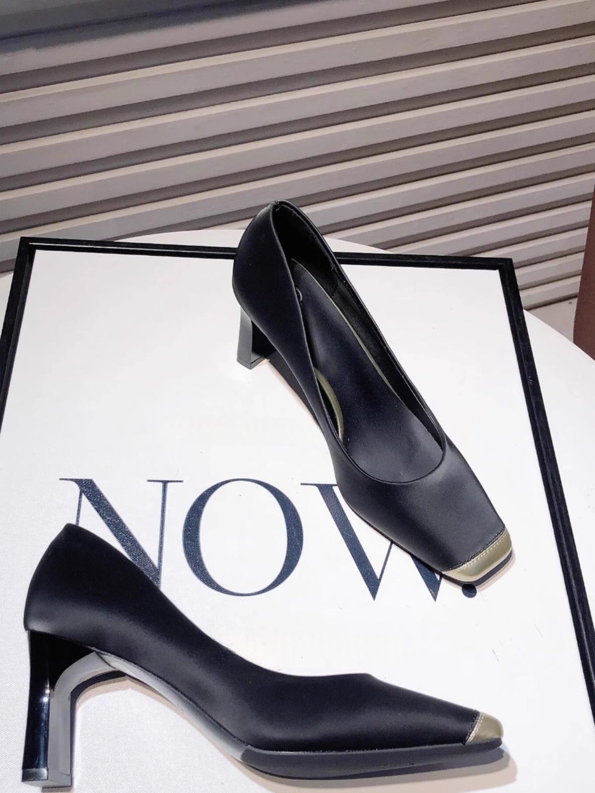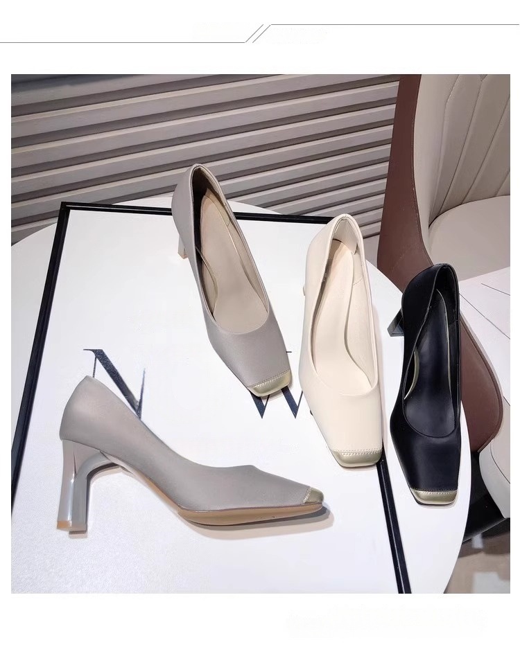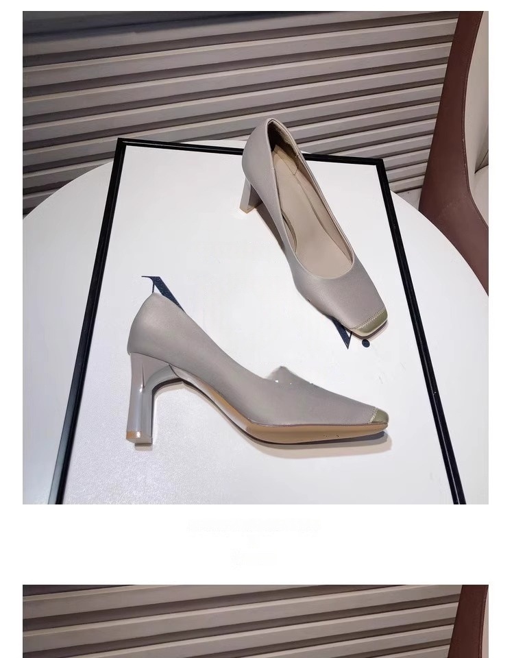 세련된 스타일의 스퀘어 토 하이힐, 신부 들러리 슈즈, 프렌치 레이디스 하이엔드 펌프스 슈즈, 2024 봄 가을 신스타일스토어 가기