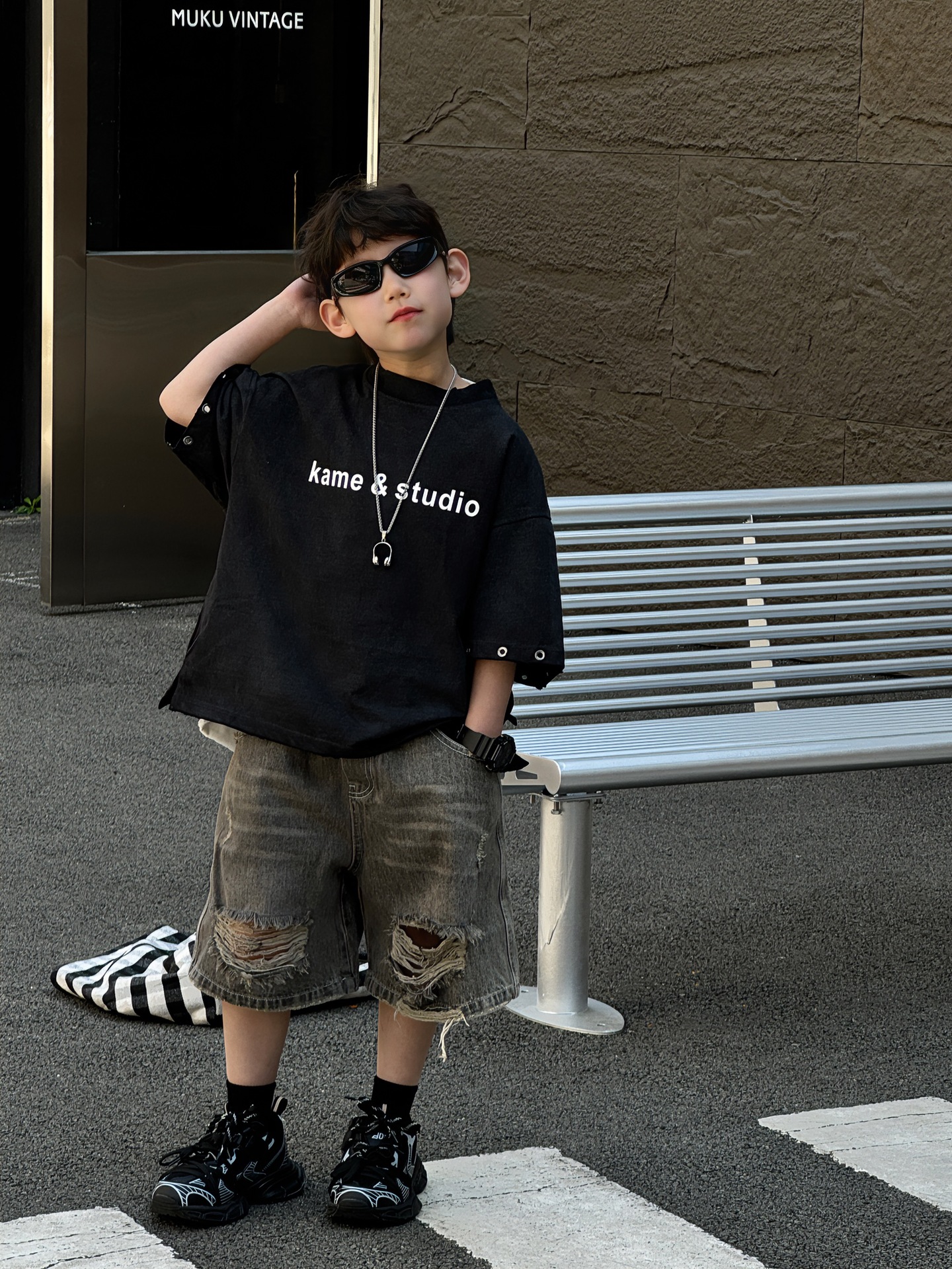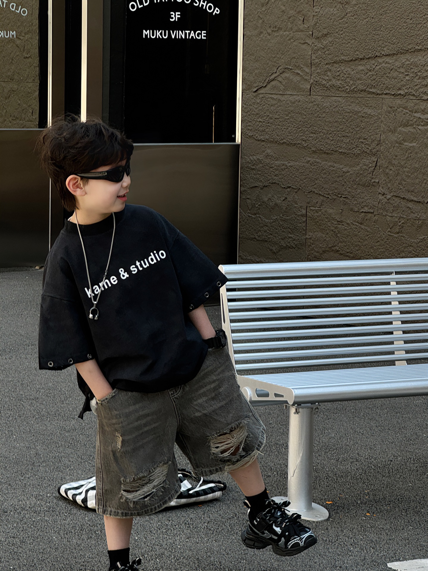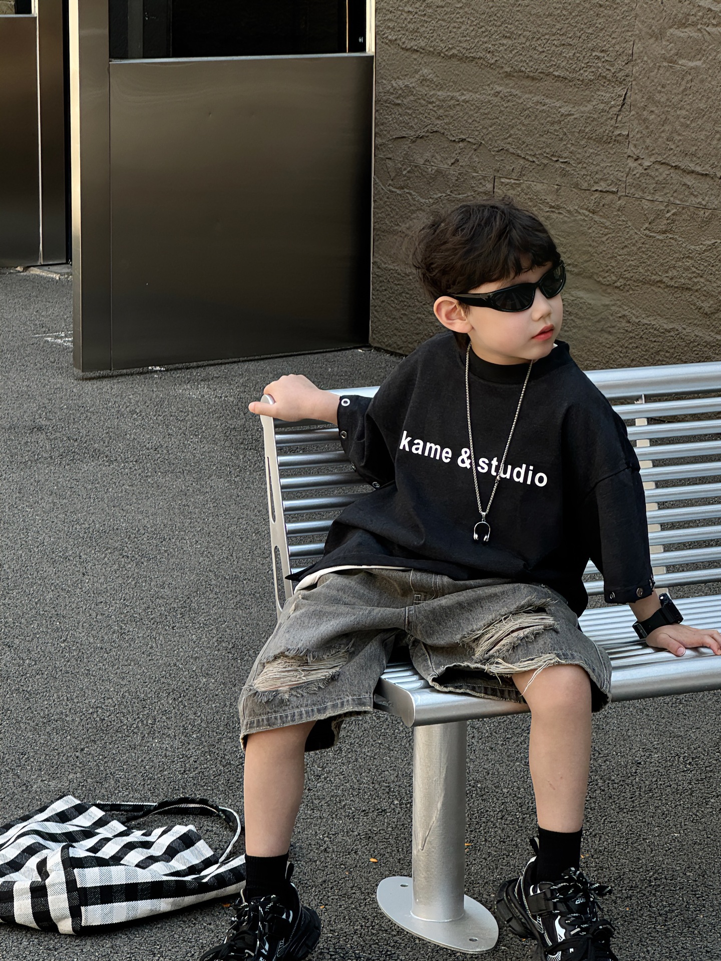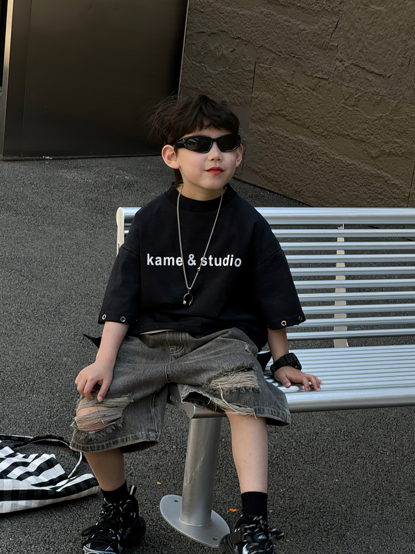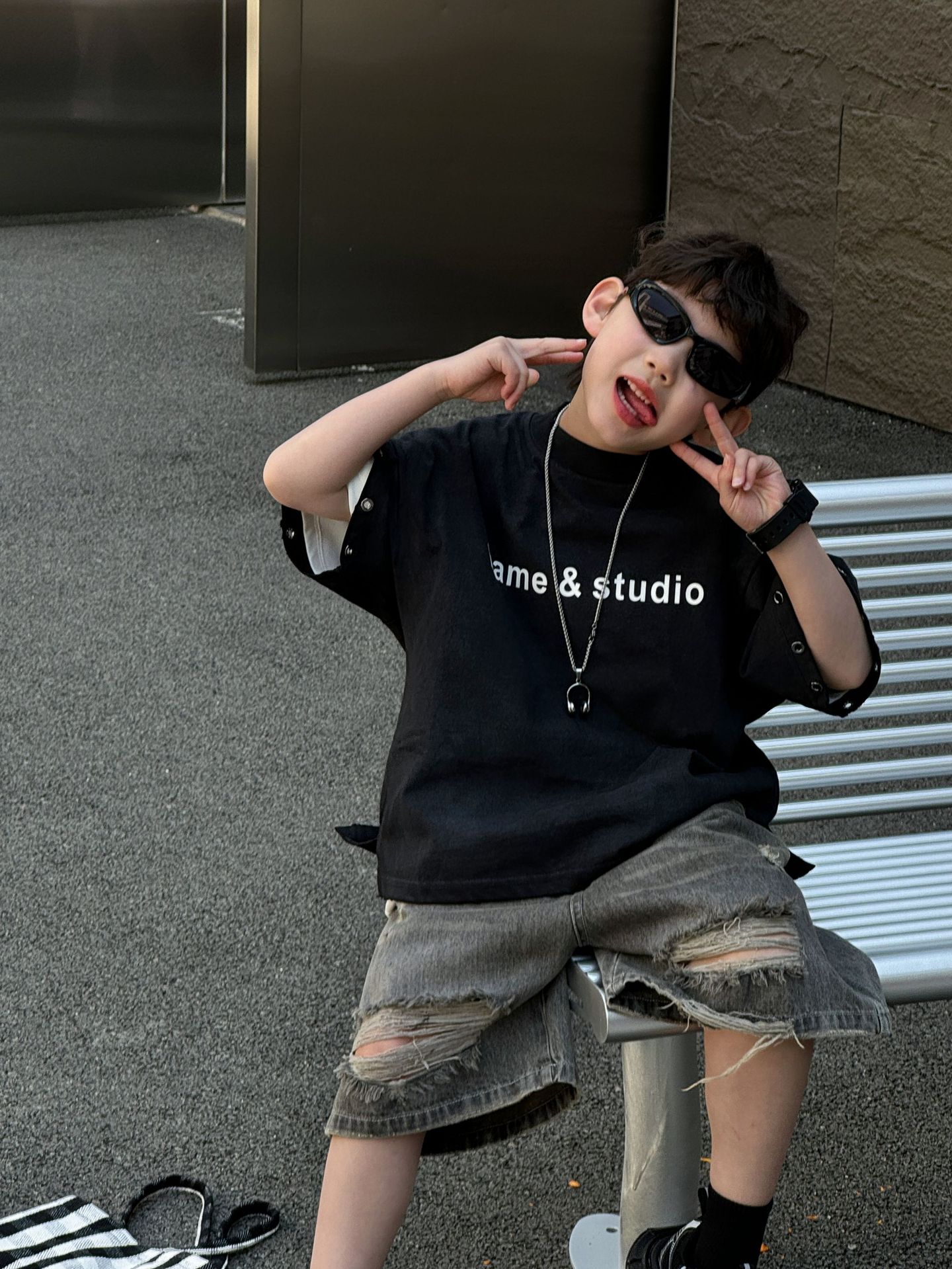 티루 2025 여름 새로운 도착 한국 스타일 소년 올매치 미국 스타일 튀김 편지 티셔츠 어린이를위한 트렌디 한 반팔 탑스토어 가기