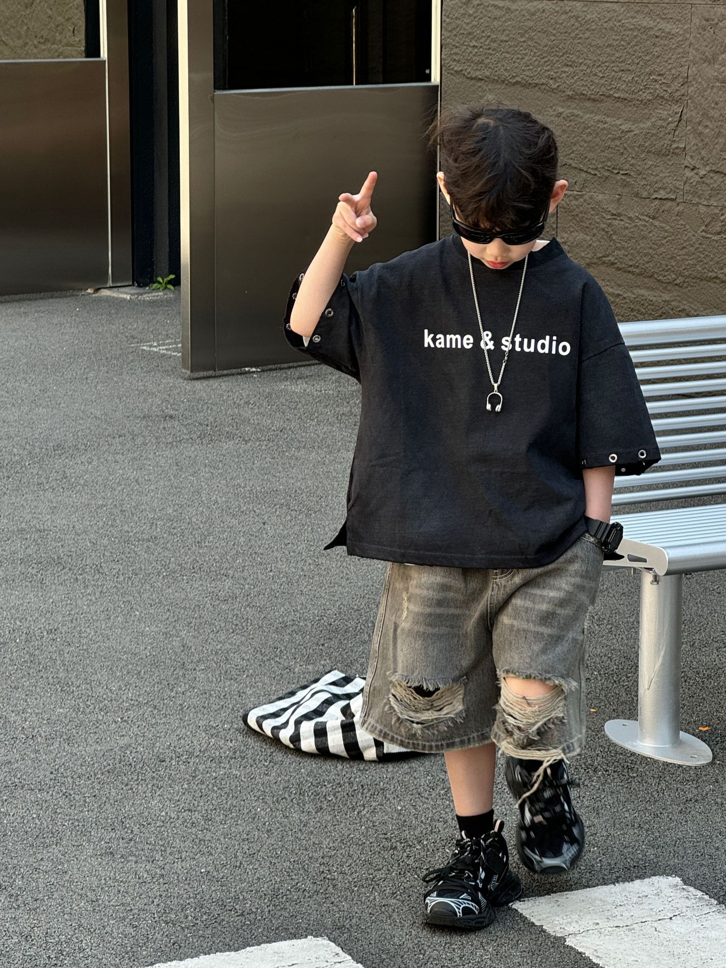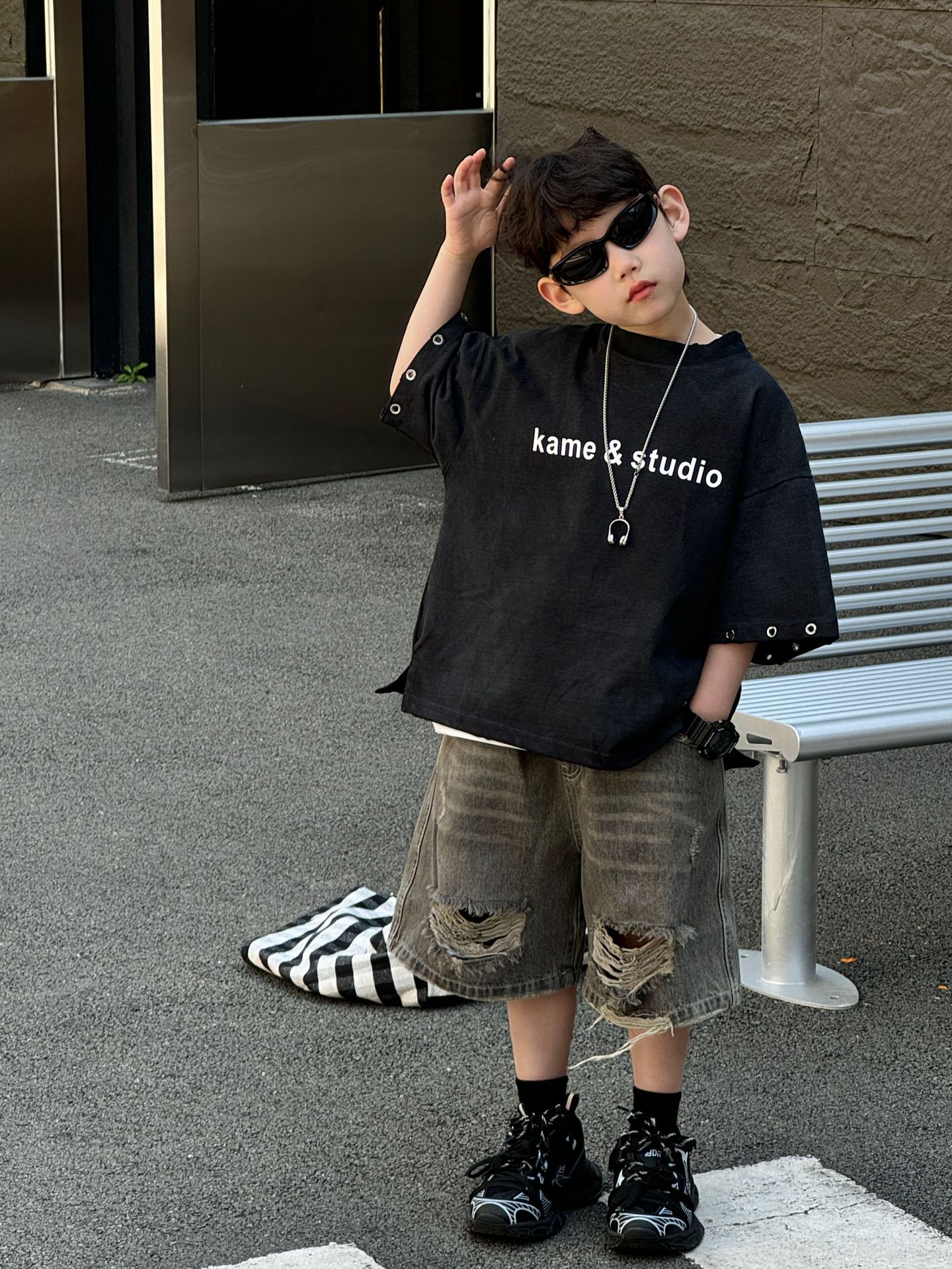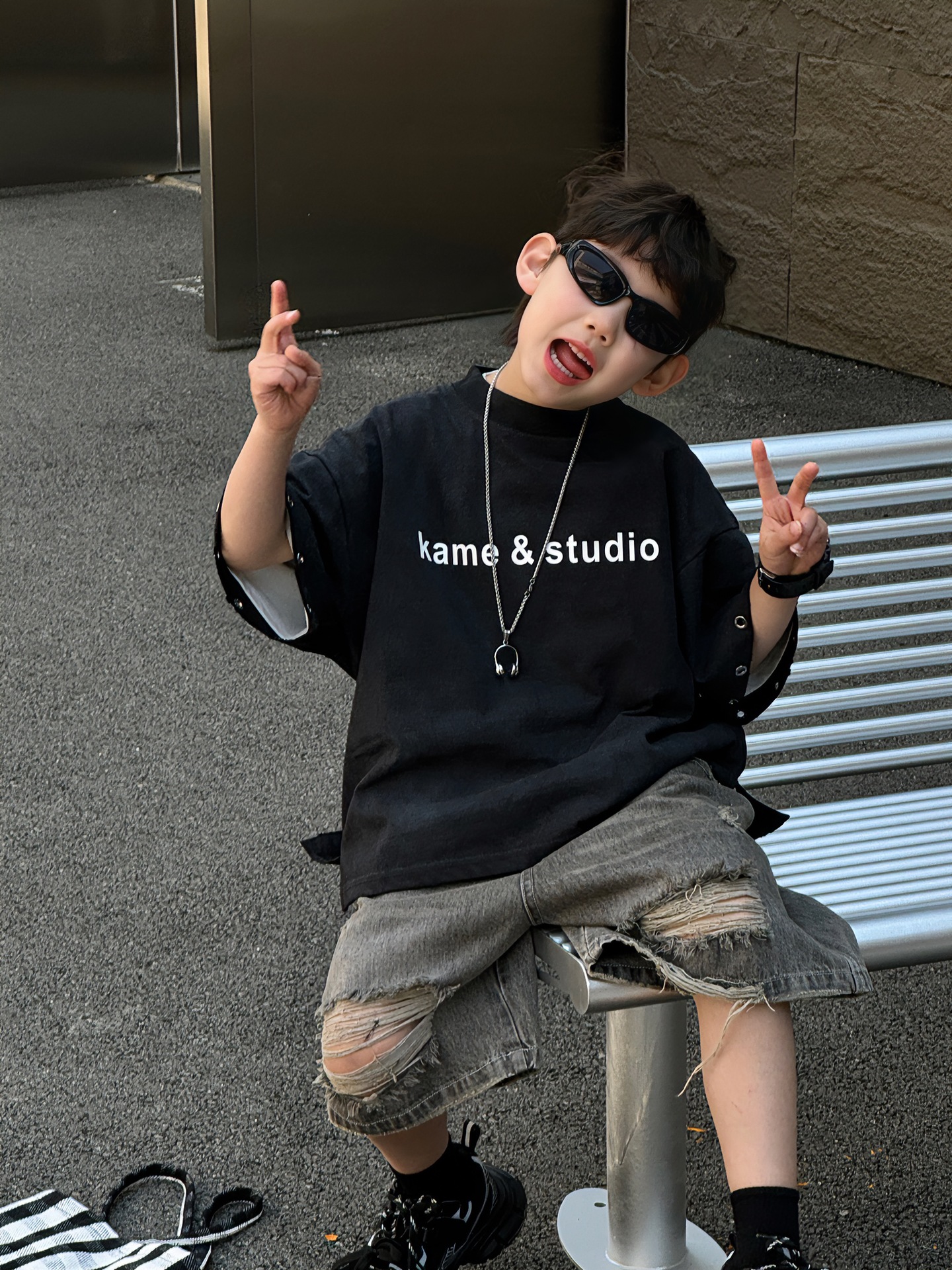 티루 2025 여름 새로운 도착 한국 스타일 소년 올매치 미국 스타일 튀김 편지 티셔츠 어린이를위한 트렌디 한 반팔 탑