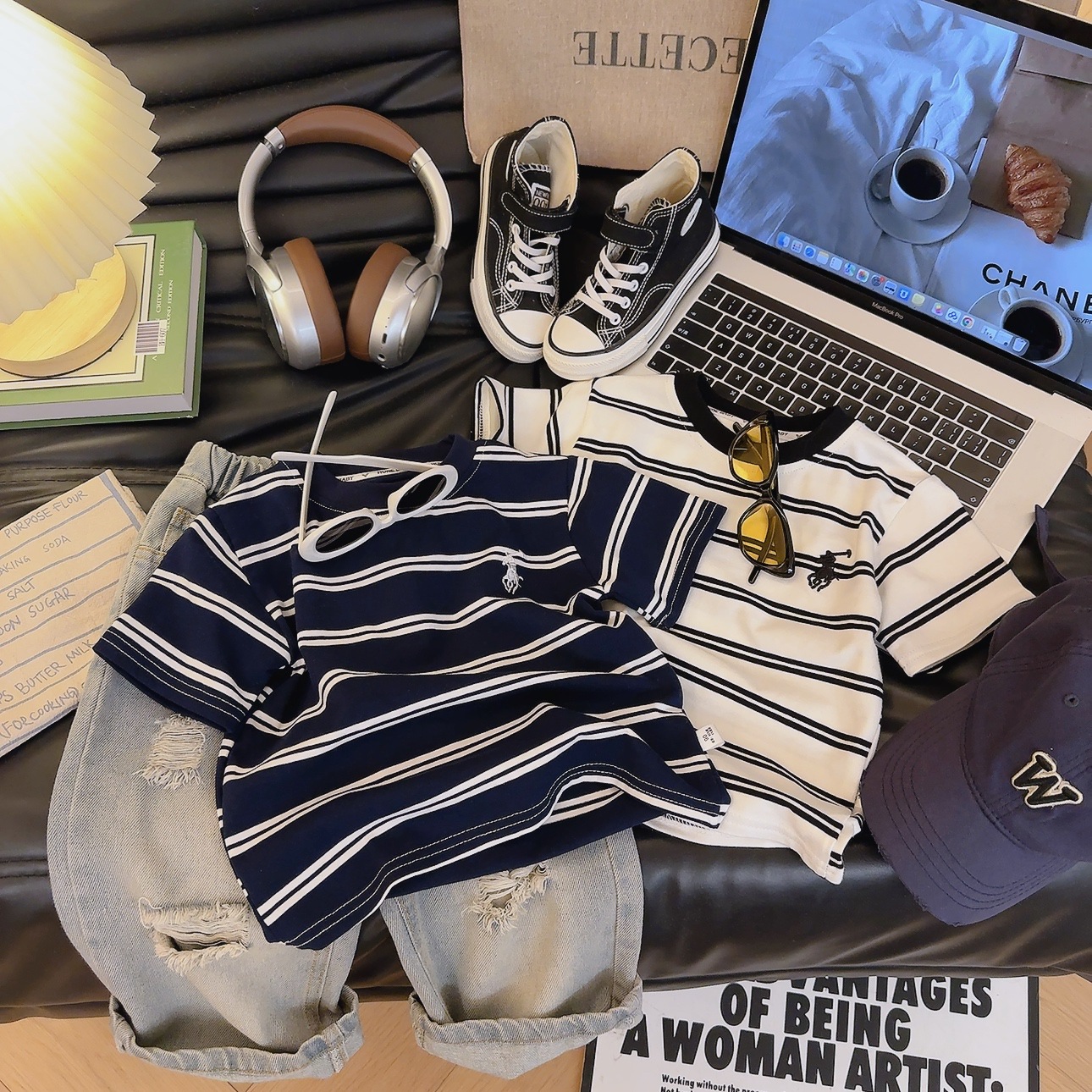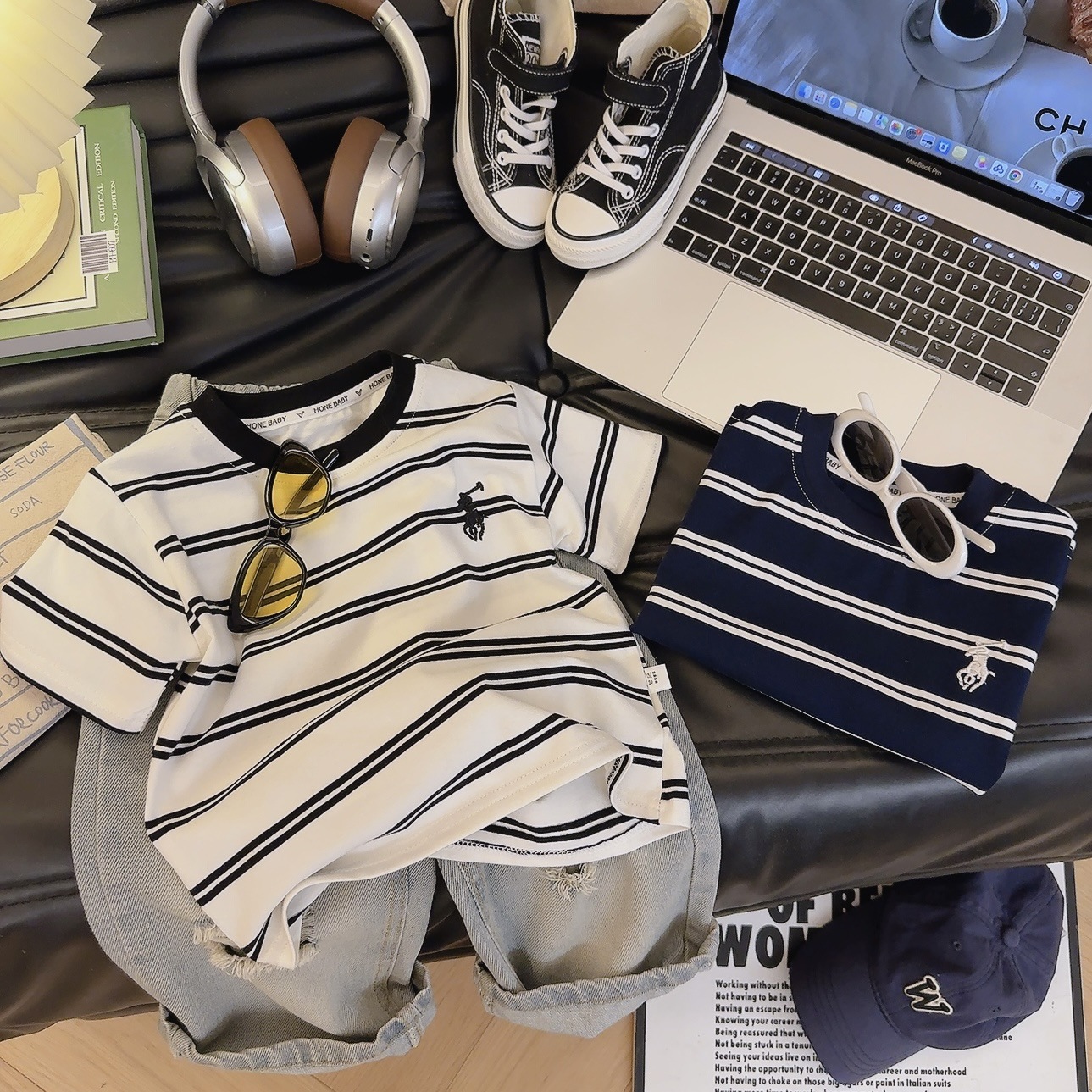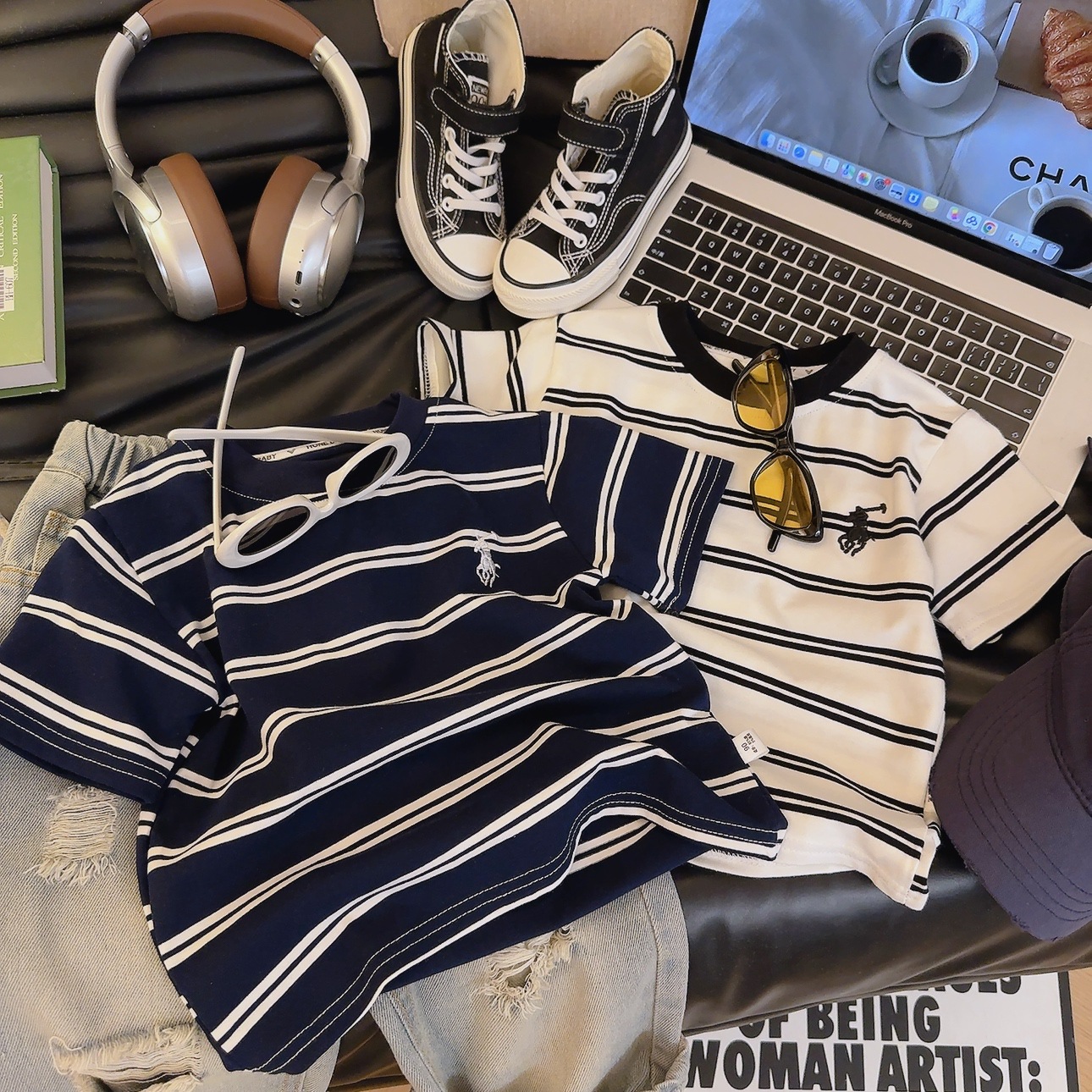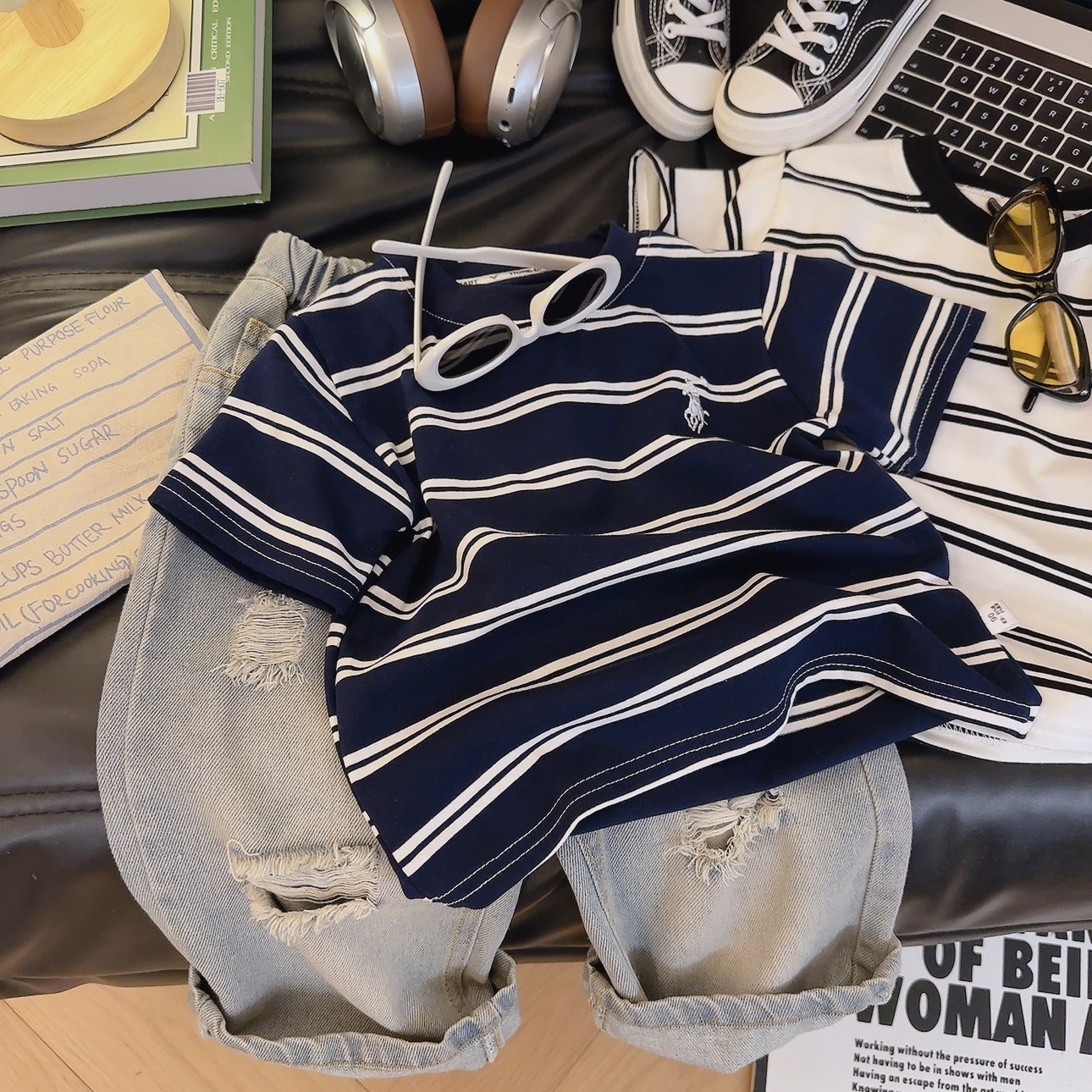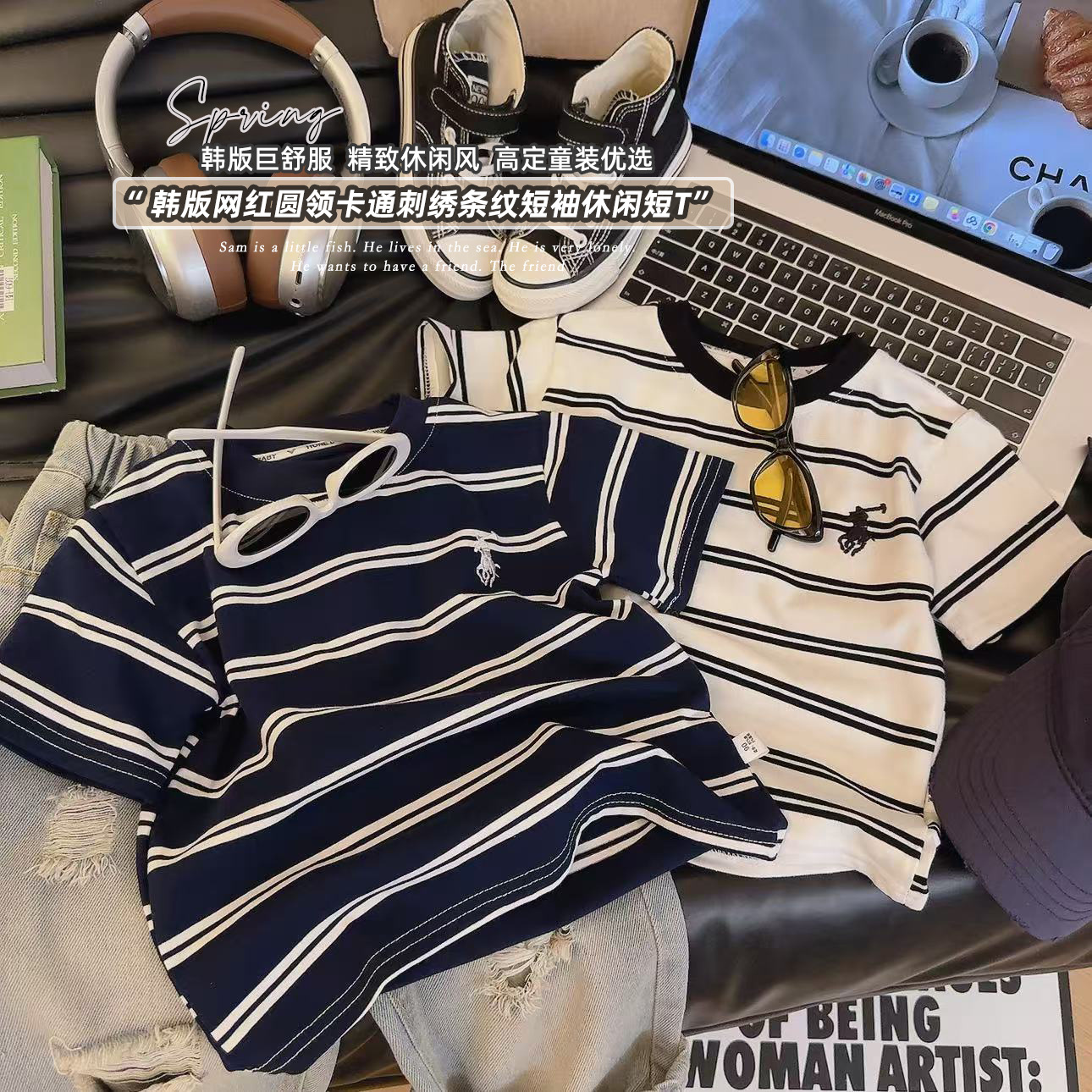 소년 소녀 하이 퀄리티 원단 어린이 여름 자수 반팔 T 코튼 스타일리시 소녀 스트라이프 탑스토어 가기