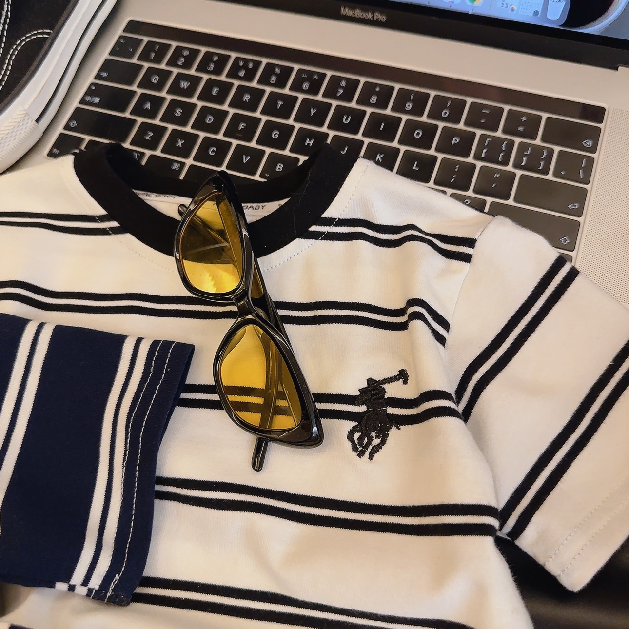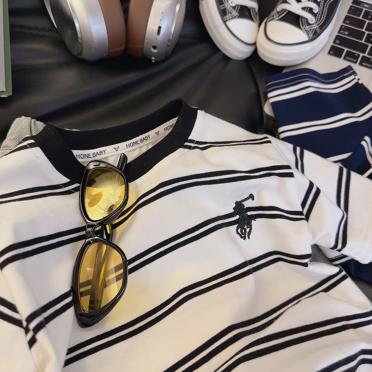 • 자수 티셔츠 네이비 블루