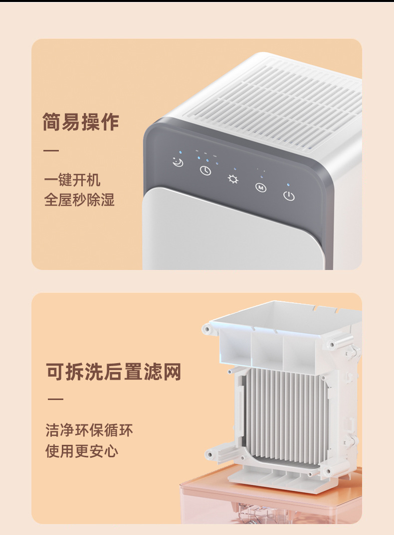• 1세대 업그레이드 버전丨 물이 가득 차면 자동으로 멈춤✔원클릭 지능형 제습(5-에 적용 가능)