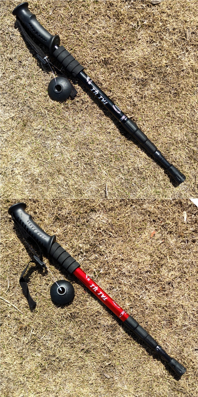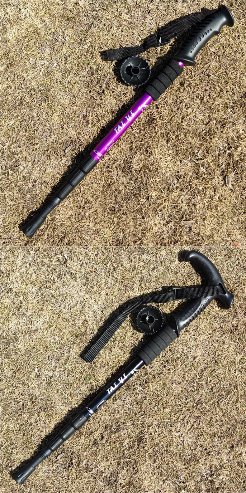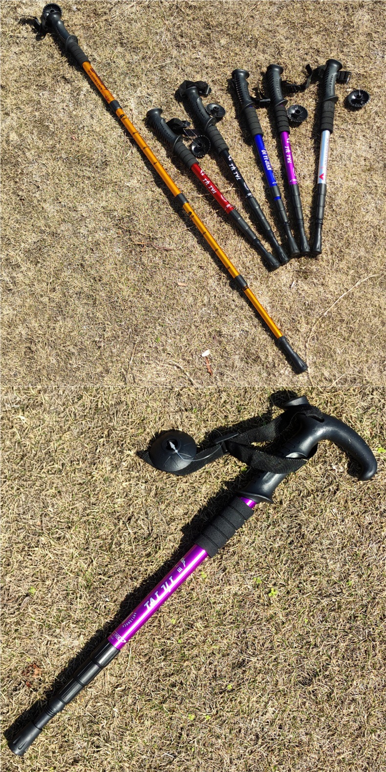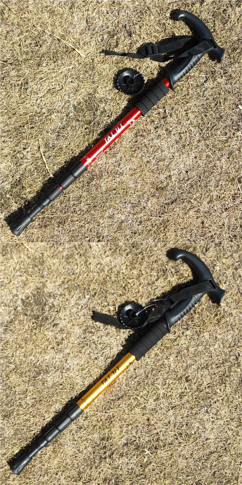 [28만개 이상의 호평] 야외 등산 스틱 4섹션 알루미늄 합금 T 핸들 곡선 핸들 직선 핸들 텔레스코픽 등산 핸들