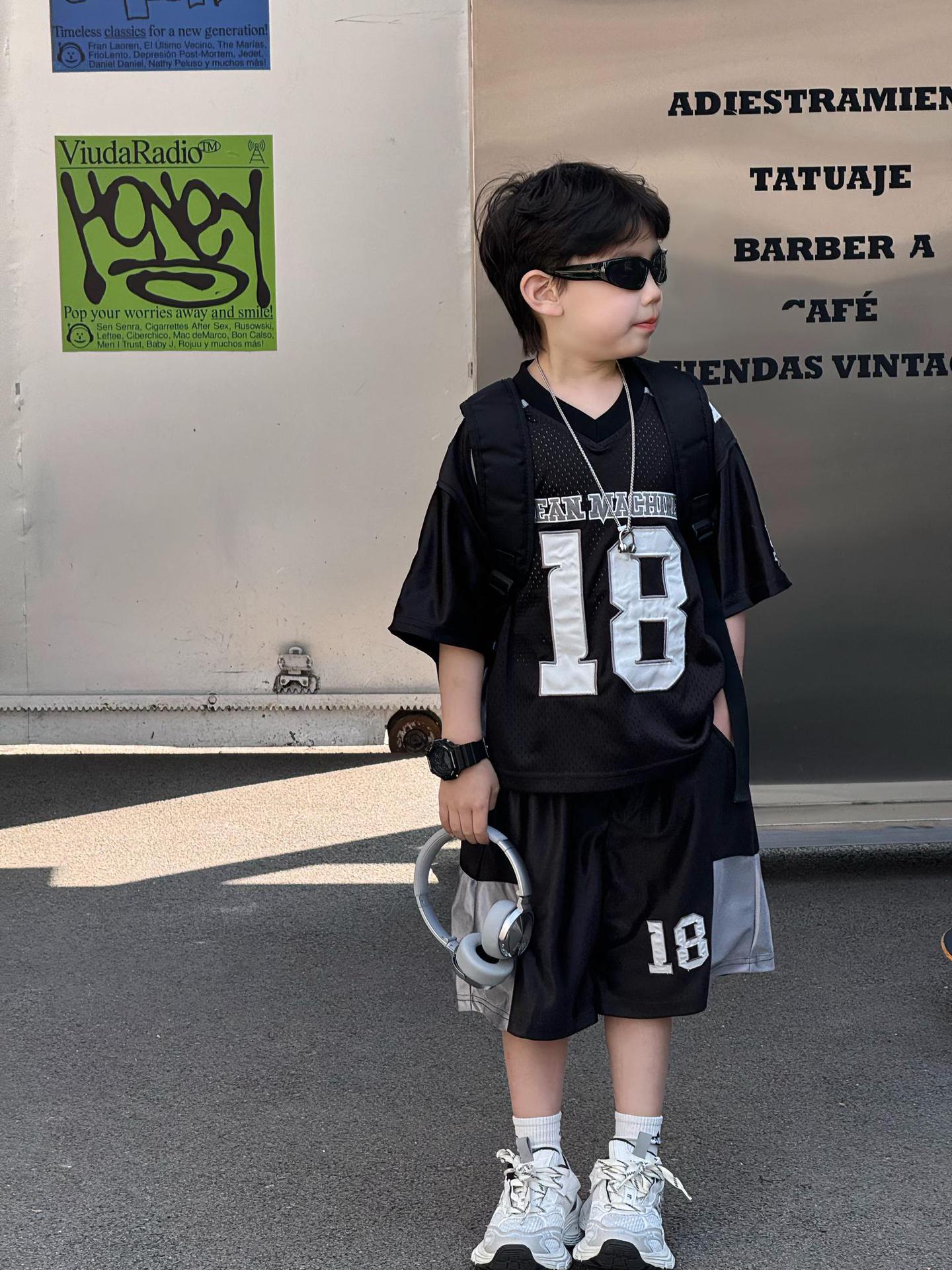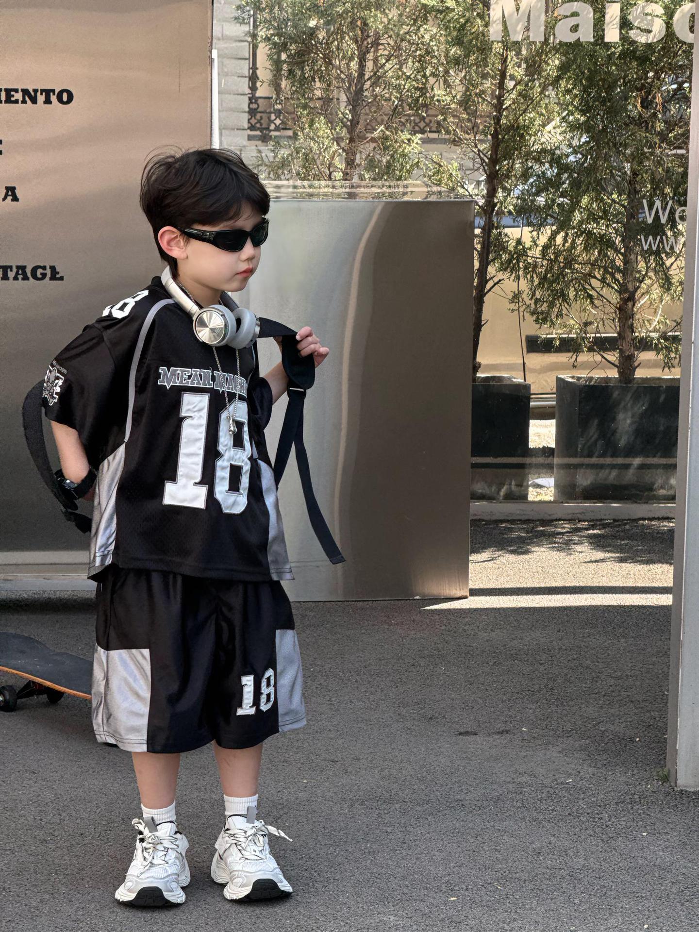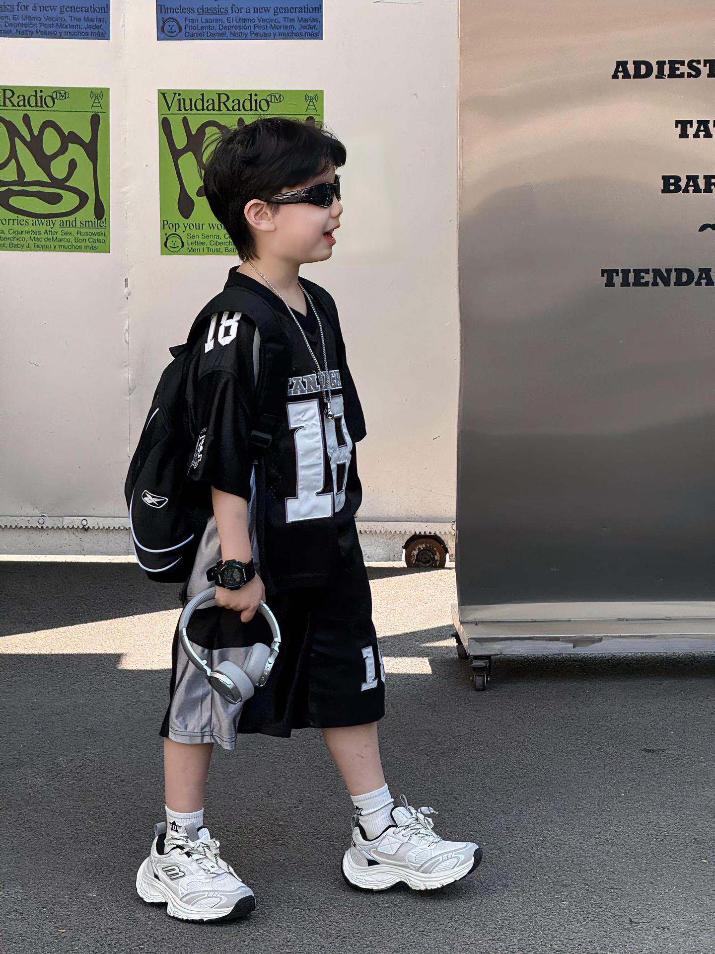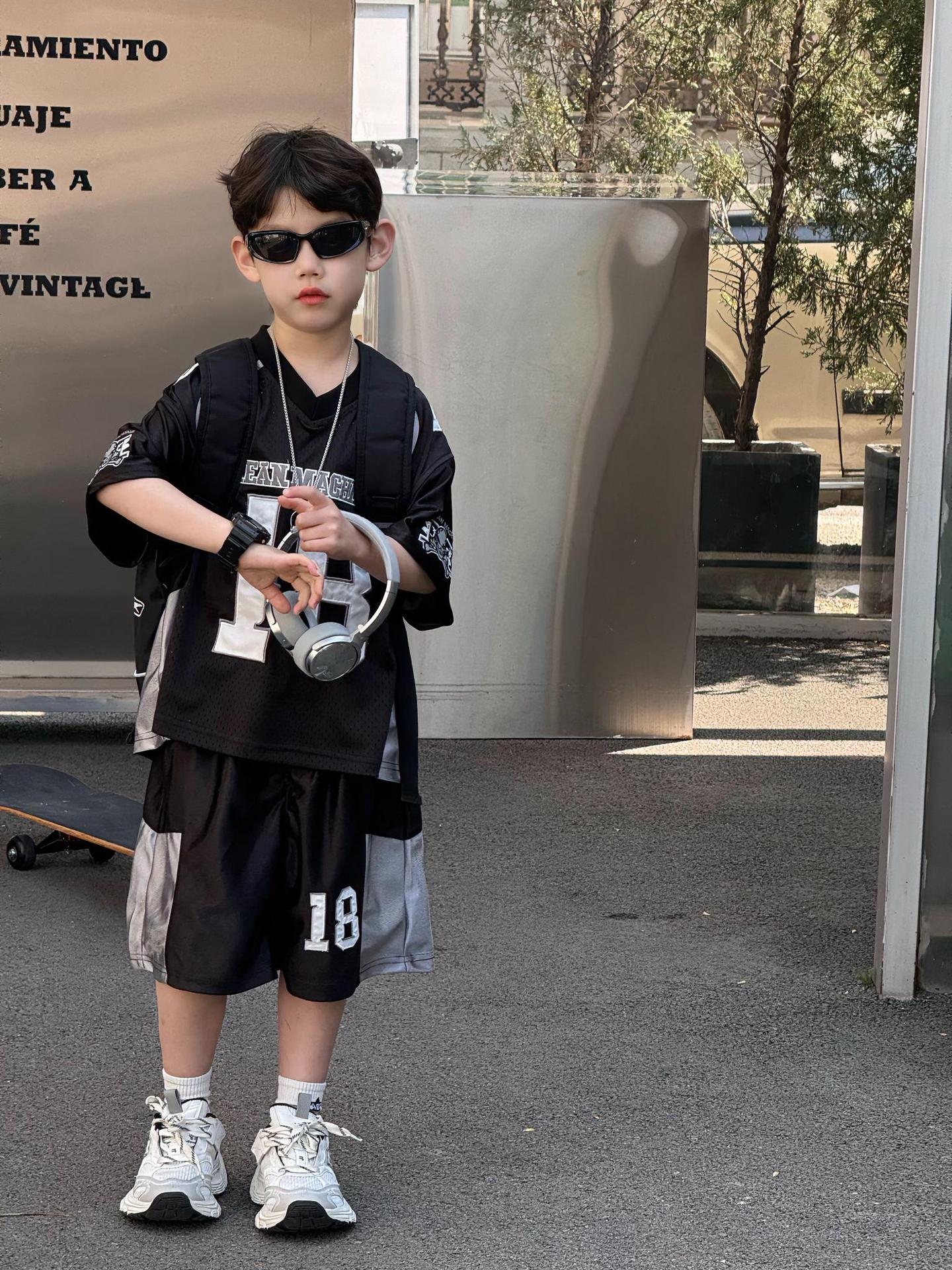 Tairu 2025 여름 새로운 한국 스타일 소년 통기성 미국 스포츠 편지 세트 어린이 짧은 소매 반바지