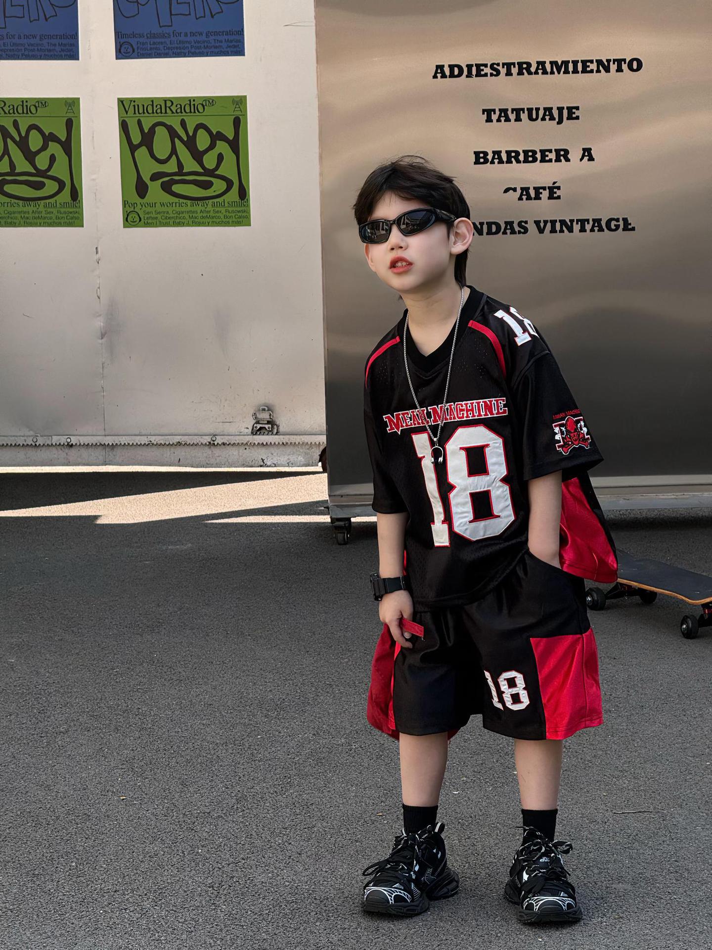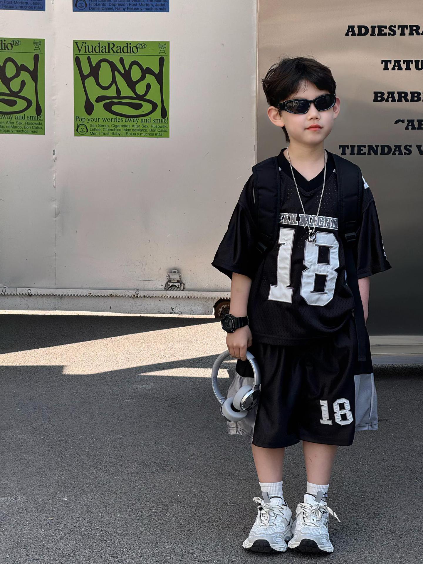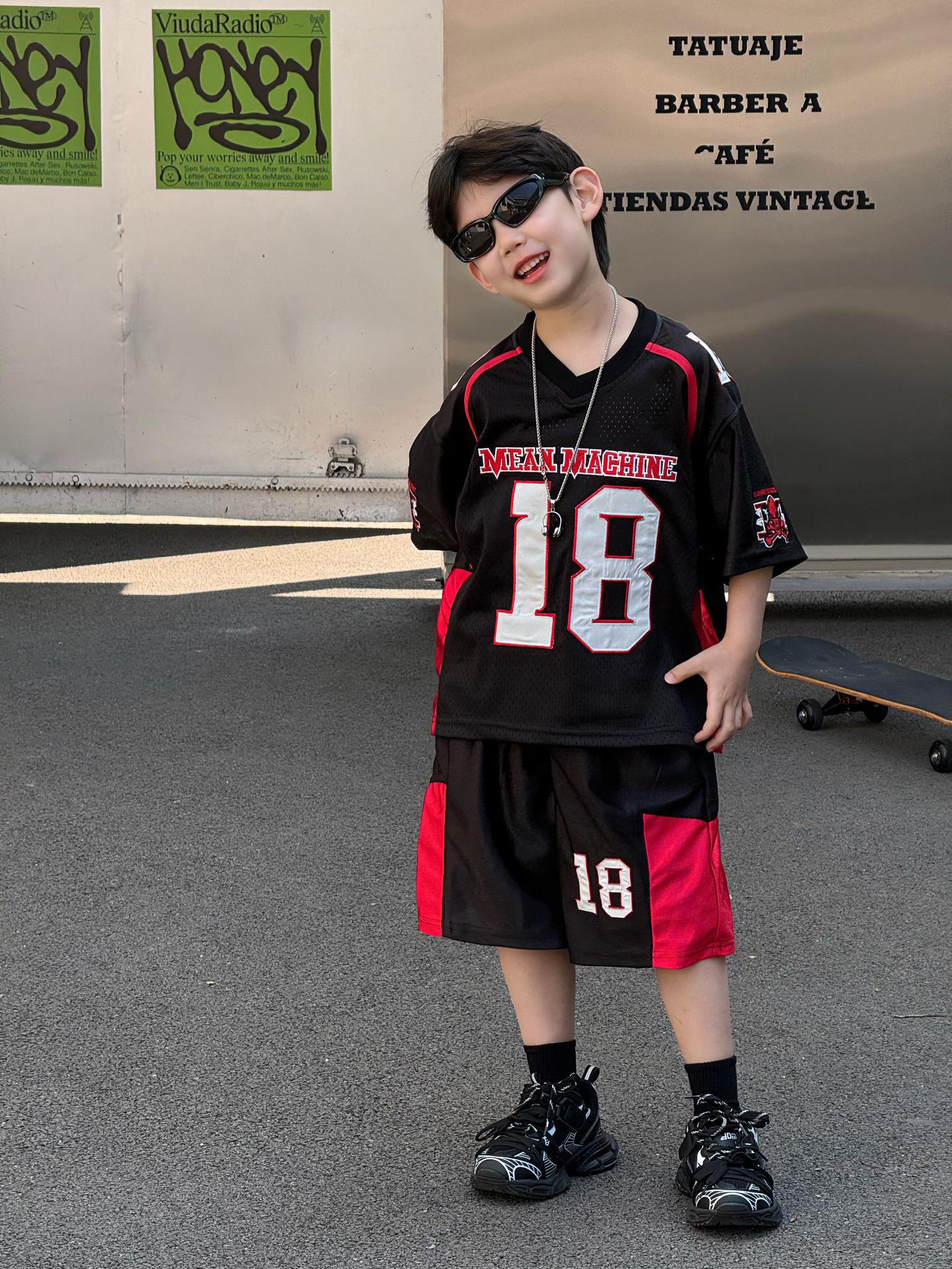 Tairu 2025 여름 새로운 한국 스타일 소년 통기성 미국 스포츠 편지 세트 어린이 짧은 소매 반바지