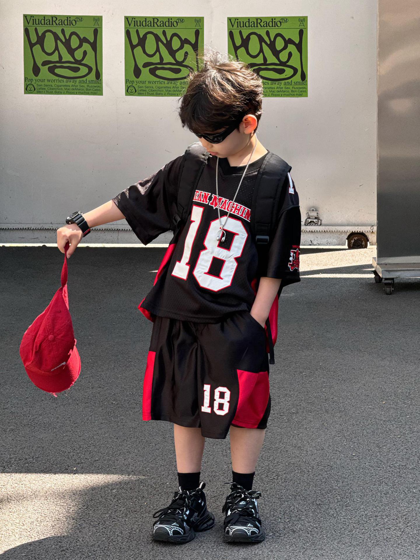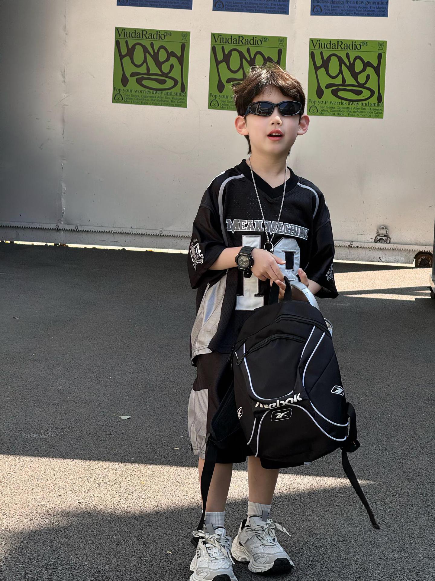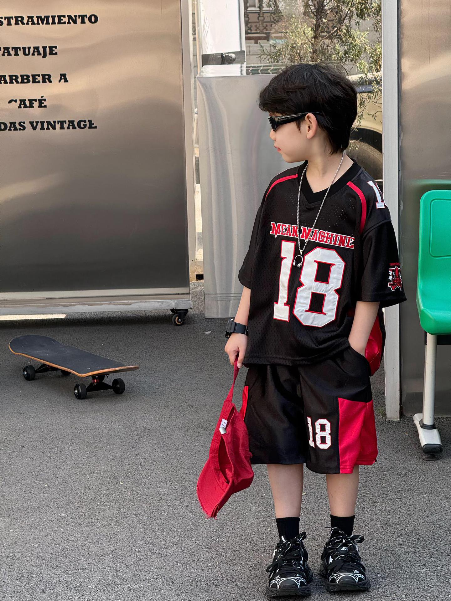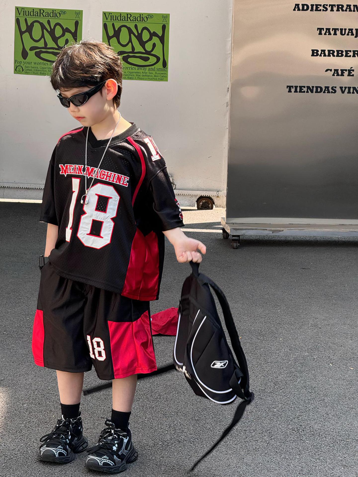 Tairu 2025 여름 새로운 한국 스타일 소년 통기성 미국 스포츠 편지 세트 어린이 짧은 소매 반바지
