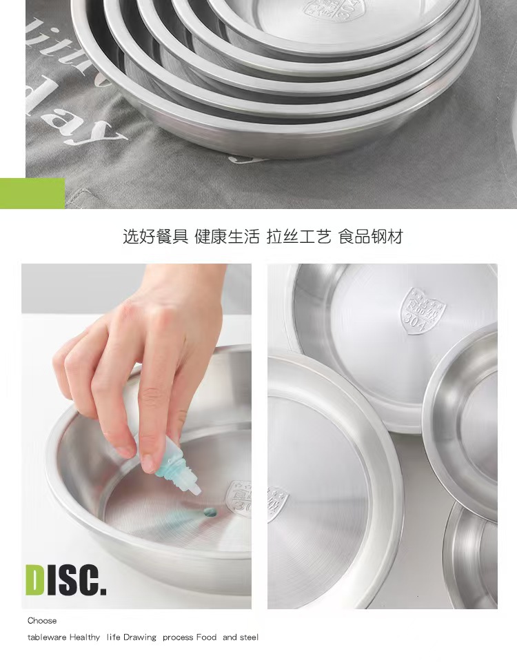 304 스테인레스 스틸 한국식 샌딩 수프 플레이트 디스크 만두 플레이트 접시 가정용 상업용 심층 맞춤형 로고