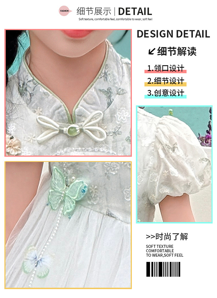 Hanfu 소녀 여름 드레스 2025 새로운 스타일 복고풍 스타일 공주 드레스 소녀 여름 공연 드레스